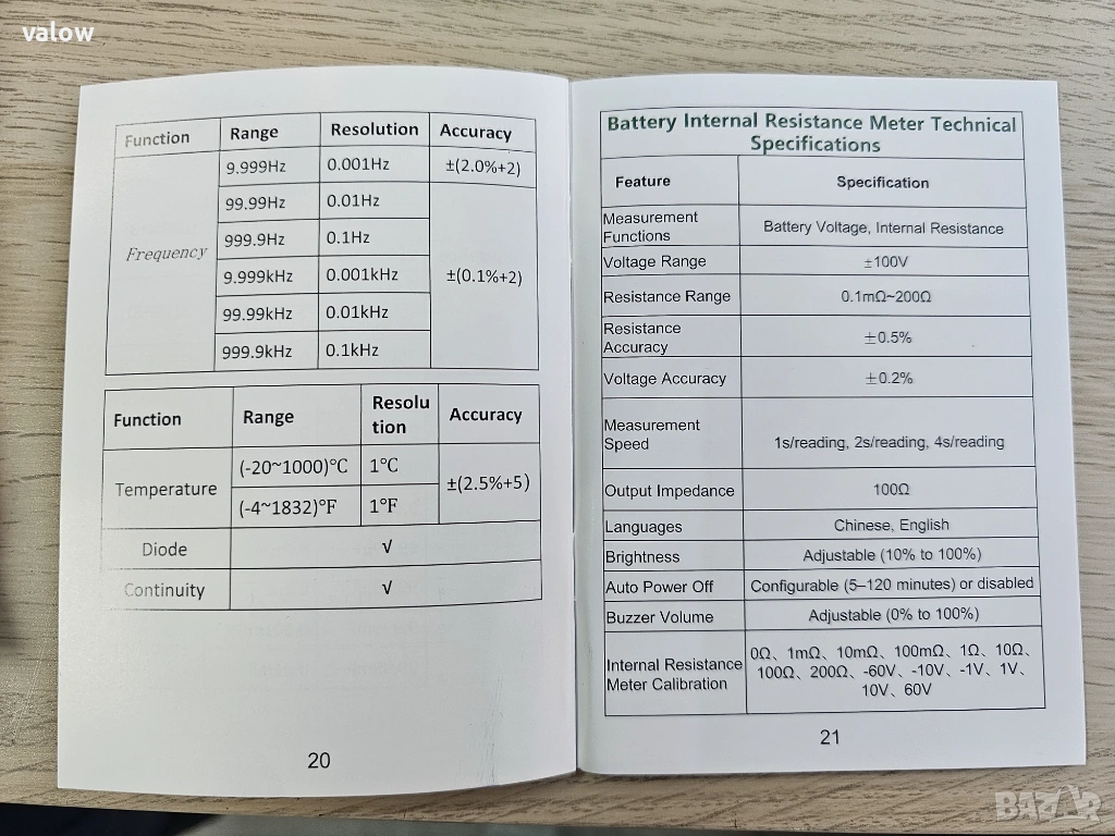 Прецизен тестер на вътрешно съпротивление на батерии + мултицет мултиметър мултимер True RMS