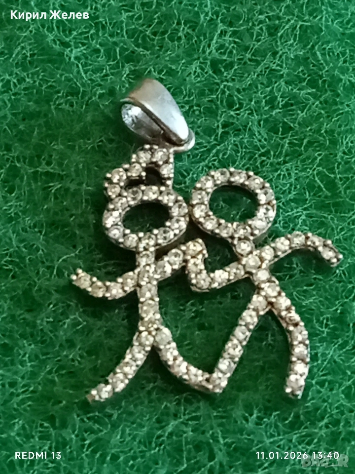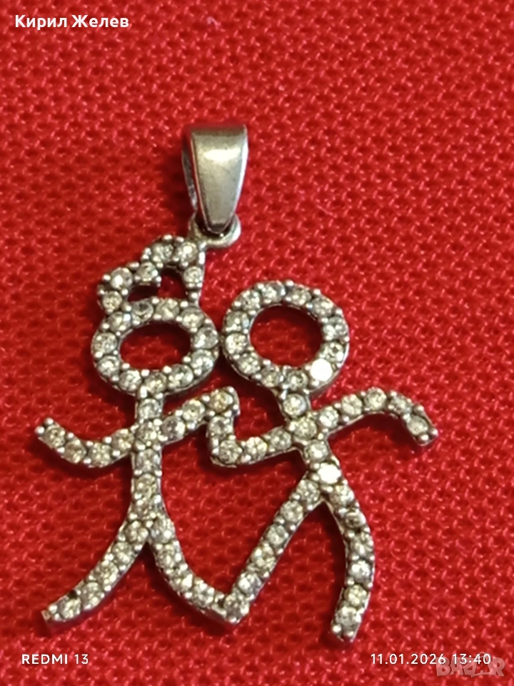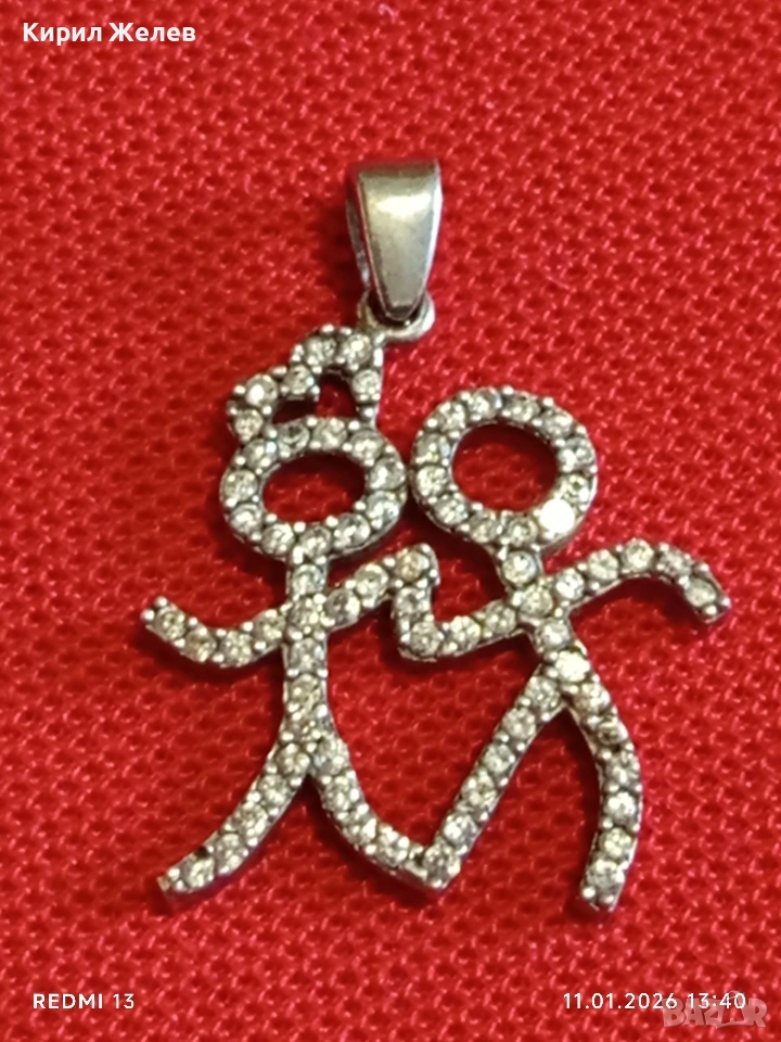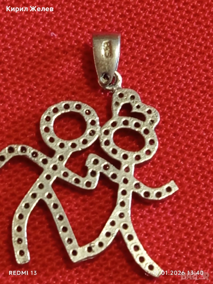 Сребърен медальон ВЛЮБЕНИ с кристали популярен избор за подарък между партньорите 52765
