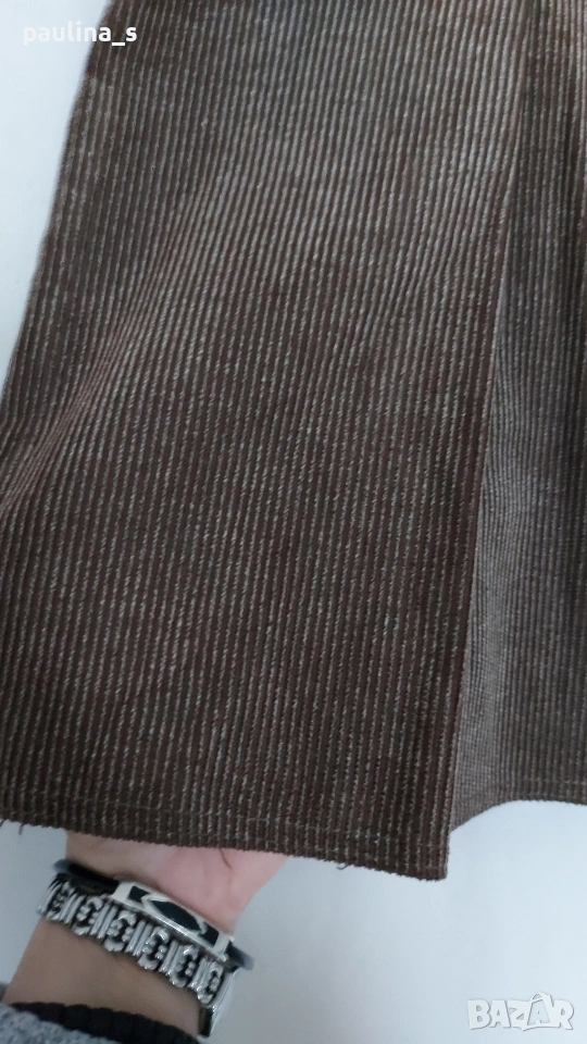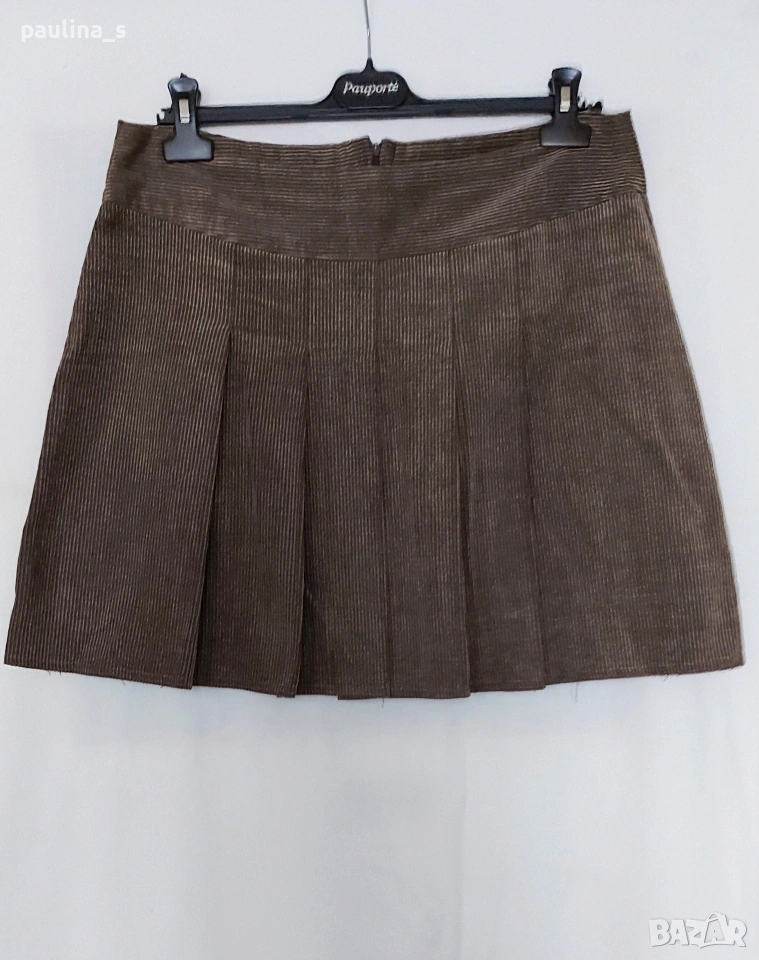 2️⃣L / XL - "frequent". Цената е крайна, без пазарлъци 10 евро. Джинсова / кадифена пола с плисета птпред, платът е с избелващ ефект по повърхността. Отзад е изчистена, подходяща е за хладно време и офис, без дефекти и етикет, като нова, една бройка, 100% памук.