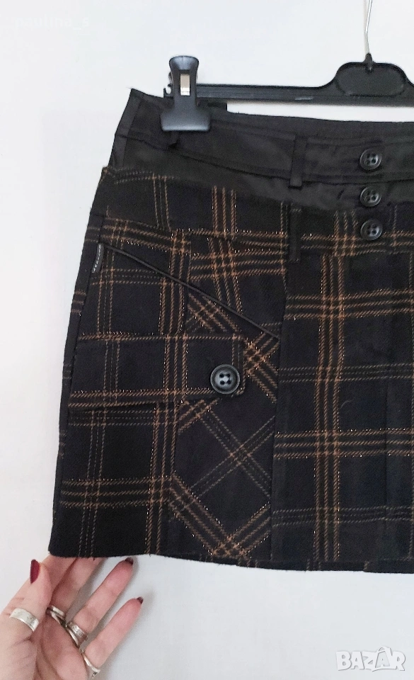 3️⃣. M / L - "watcher". ВИНТИДЖ! Цената е крайна, без пазарлъци 12 евро. Пола с хастар и двойна талия. Платът е в каре освежен с ламена нишка ѝ със съдържание на вълна. Отпред има плохи и копчета, като горната част е от плътен зимен сатен.