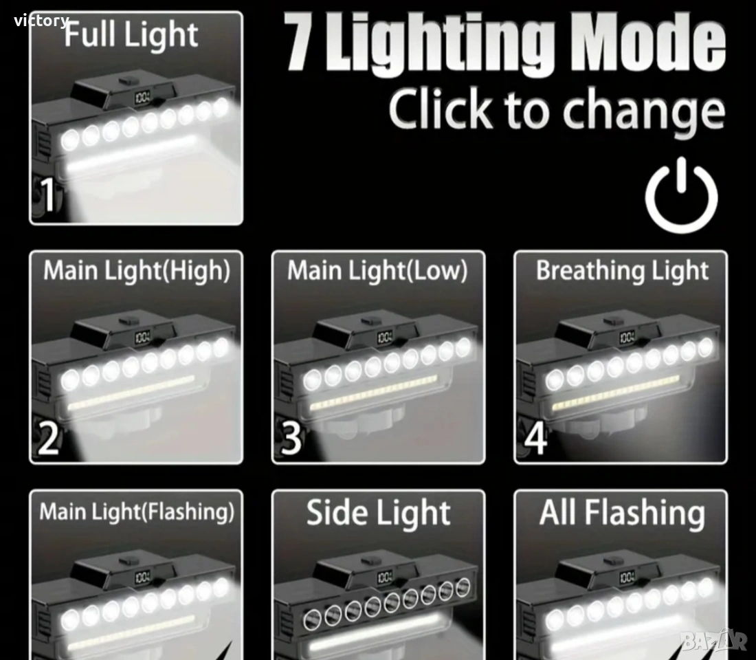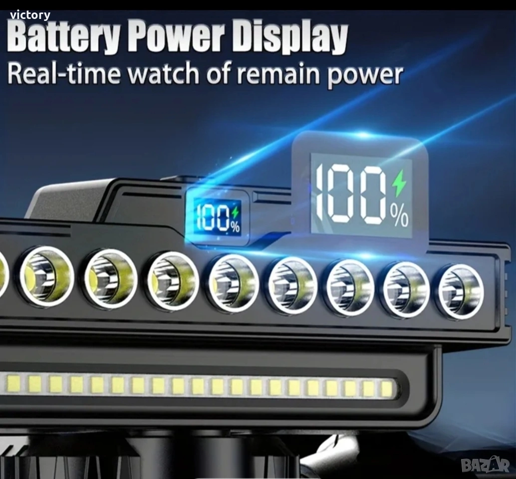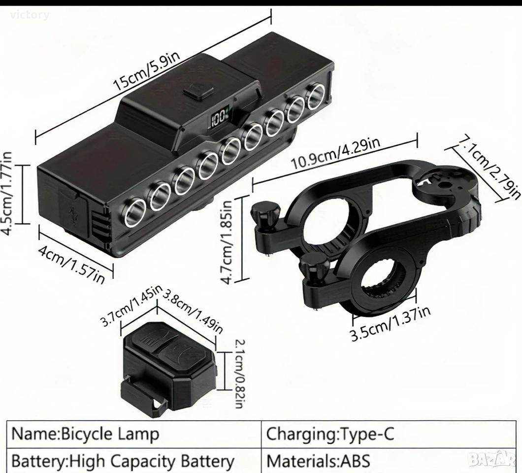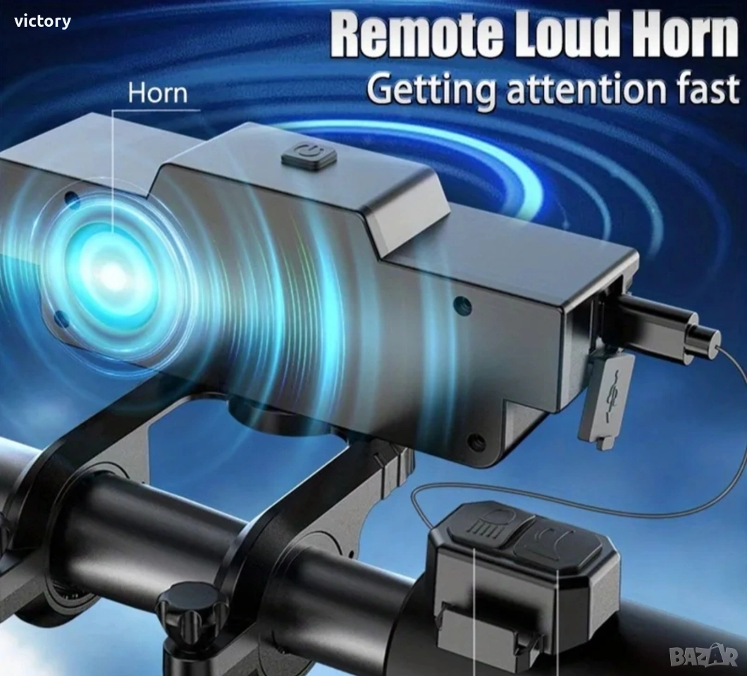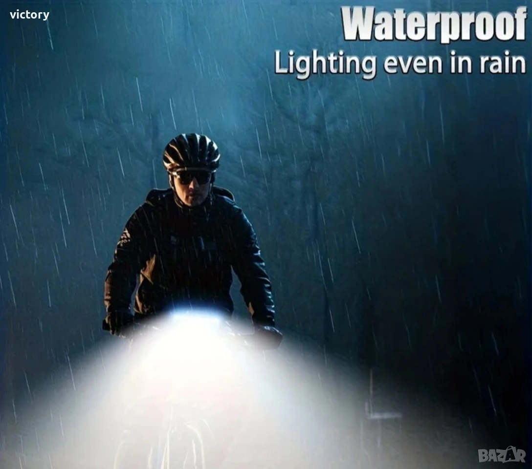 Ултра ярък преден фар за велосипед с 9 LED диода, 2000 lm мощност, клаксон 120 dB и батерия 4000 mAh Основни характеристики: *Супер ярка светлина: Оборудван с 9 LED + 21 SMD мощни диода, които осигуряват отлично осветяване дори в пълна тъмнина. *Широк светлинен ъгъл: Хоризонталният дизайн гарантира ултра широк диапазон на осветяване, покривайки целия път пред вас. *USB презареждаема батерия: Вградена литиево-йонна батерия 4000 mAh, осигуряваща 2.5 до 7 часа работа с едно зареждане. *Мощен клаксон: Вграден 120 dB звуков сигнал, управляван чрез дистанционно – осигурява безопасност при движение в трафик. *6 режима на осветяване: Лесно превключване между режимите чрез бутон или дистанционно управление. *Издръжлив и водоустойчив корпус: Изработен от алуминиева сплав и ABS пластмаса, със степен на защита IP44 – подходящ за всякакви атмосферни условия. Технически спецификации: *Диоди: 9 LED + 21 SMD *Материал: ABS / Алуминий *Режими: 6 режима *Зареждане: USB *Капацитет на батерията: 4000 mAh *Водоустойчивост: IP44 *Звукова мощност: 120 dB *Размери: 146 × 40 × 56 mm Комплектът включва: 1 × Предна светлина за велосипед 1 × Монтажна стойка 1 × Дистанционно управление 1 × USB кабел за зареждане