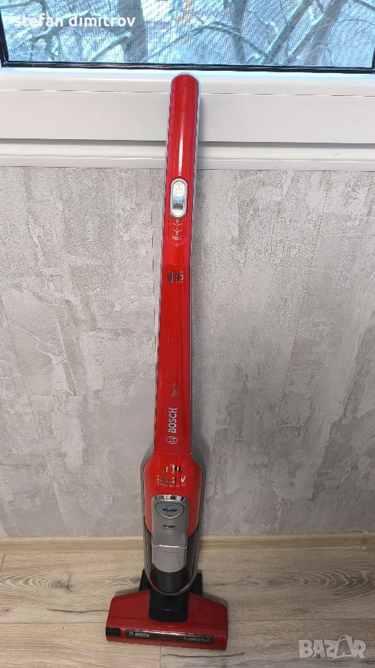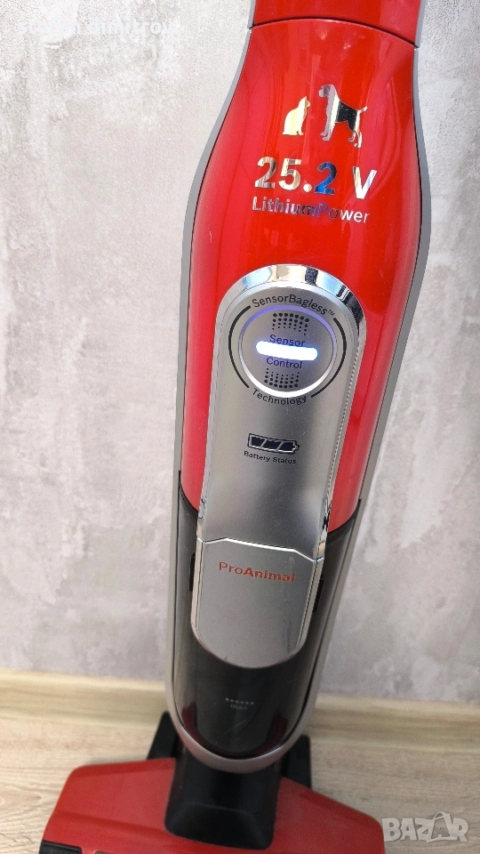 Липсва зарядното батерията е изтощена незнам какво и е състоянието здрав двигател електроника и турбо четка . характеристики За любителите на домашни любимци: 30% по-бързо почистване, до 60 минути, дори и в безжичен режим с вертикалната прахосмукачка Athlet Zoo’o ProAnimal. • Четка за почистване ProAnimal High Performance, предназначена за всички типове подови настилки, с допълнителни въртящи се четчици, идеални за премахване на животинска козина • Уникална технология SensorBagless™: изключително мощна, с минимални усилия за поддръжка • Литиево-йонна технология на Bosch: презареждаща се батерия, която е издръжлива, има дълъг живот и се зарежда за отрицателно време • Абсолютен комфорт: лесна за употреба, съхранение и поддържане, благодарение на ниското тегло и системата EasyClean • Максимална гъвкавост: лесно достигане до най-недостъпните места, благодарение на регулируемите професионални аксесоари Производителност: - 30% по-бързо почистване на животинска козина, до 60 минути - Мотор LongLife за по-висока производителност и по-дълъг живот - Bosch батерия с литиево-йонна технология - Безупречно почистване за всички видове подови настилки, благодарение на технологията за ефективно задържане на праха в торбата и мощната четка ProAnimal - Сензорен контрол: LED индикатор за почистване на филтъра - 3 нива на производителност: 1 ниво - за леко замърсени повърхности, максимално щадящо батерията; 2 ниво - за нормално почистване и средна издръжливост на батерията; Turbo ниво - за краткотрайно почистване на висока производителност Поддръжка: - Почистване на филтъра: дисплей с LED индикатори за необходимост от почистване - Лесно изпразване на контейнера и почистване - Хигиеничен филтър на праховите емисии Комфорт - Система EasyClean: лесно отстраняване и почистване на въртящата се четк - Максимална гъвкавост: безкрайни възможности за достигане на всяко кътче под и около мебелите - Аксесоари ProAnimal: много къса дръжка, всмукателна тръба, презрамка, накрайник за тапицерия и интериора на автомобила, както и трудно достижими места - Лесно съхранение, спестяващо пространство и гъвкаво зареждане във всеки контакт - Дълго време за работа до 60 минути - Индикатор за нивото на зареденост на батерията: да, 3 нива - Бързо зареждане: 3 часа (батерията е заредена на 80%), 6 часа (батерията е заредена на 100%) - Обем за контейнера за прах: 0.9 л - Ергономична дръжка - Тегло: 3 кг за подробности 0899577637