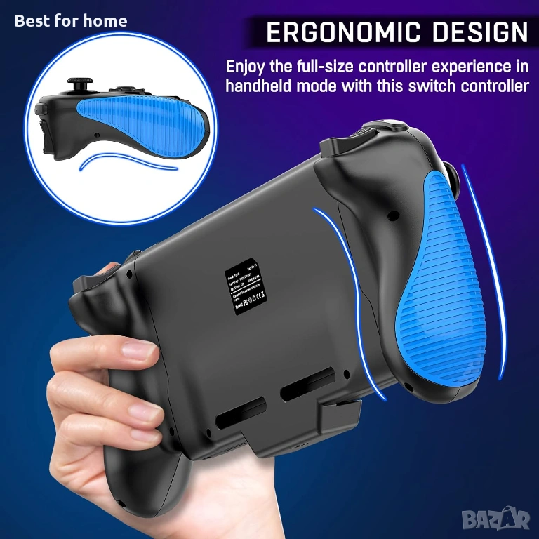 Ръчен режим: Контролерът Switch pro осигурява перфектното гейминг изживяване за конзолите Switch/Switch OLED! Уголемената дръжка и прецизните контроли на движението на джойстика позволяват максимална прецизност и бърза реакция дори по време на дълги игрови сесии, а противоплъзгащата и ергономична функция за захващане няма да ви измори дори след дълги часове игра.