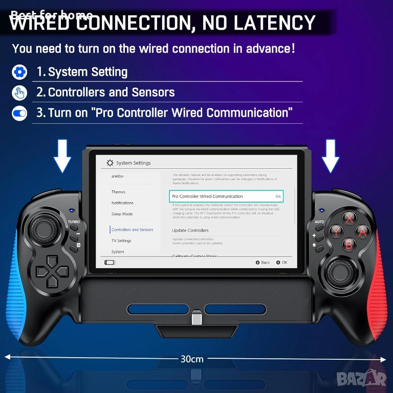 Plug & Play и скрийншот: Лесно свързване, без прекъсване, без забавяне. Type-C конекторът се свързва директно към конзолата Switch/Switch OLED за бърза plug-and-play реакция. Бутон за скрийншот в центъра на контролера от лявата страна позволява на играчите да правят незабавни скрийншотове по време на игра и да ги споделят с приятели в социалните мрежи, за да запишат страхотни игрови моменти.
