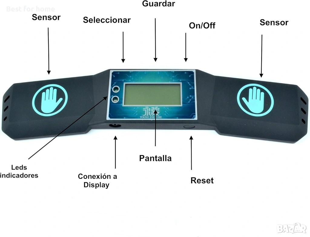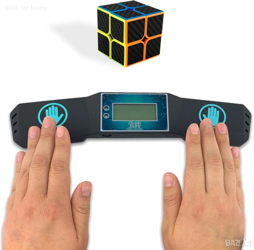 Как работи? Включете новия си таймер, поставете двете си ръце върху сензорите в двата му края, зелен светодиод ще светне и вече можете да вдигнете ръцете си и да започнете да решавате куба си (препоръчваме YUXIN Little Magic cube). След като го решите, поставете ръцете си обратно върху сензорите; това автоматично ще спре таймера и ще ви покаже времето.
