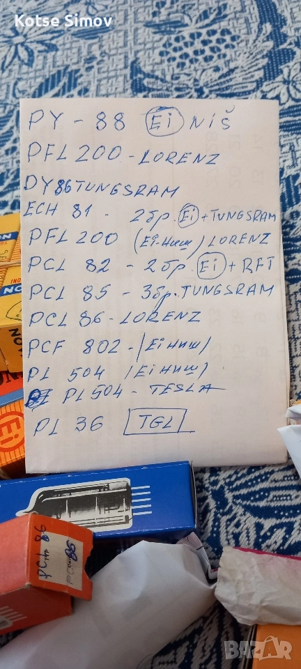Нови радио,телевизионни лампи на ,,Електронска индустрия-НИШ",и Тунгсрам и няколко употребявани на,,Лоренц-Западна Германия,Тунгсрам,Тесла идр.Цената е от 2.50÷6 евро.На втората снимка са обозначени лампите.