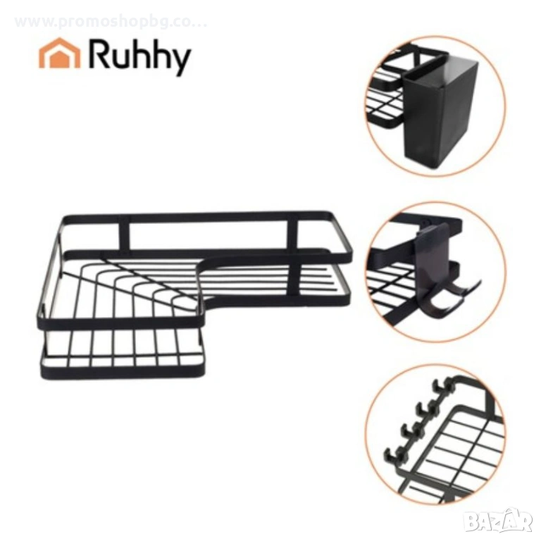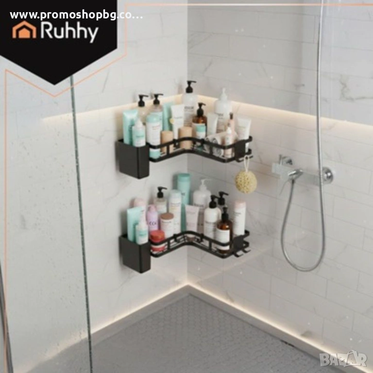 Този комплект от два ъглови рафта за баня от Ruhhy е практично и естетически приятно решение, което ви позволява да организирате пространството си за душ и баня, без да пробивате плочки. Здравата му конструкция, модерният лофт вид и лесният монтаж го правят перфектно допълнение към всеки интериор. Идеален за козметика, аксесоари и ежедневни хигиенни продукти.