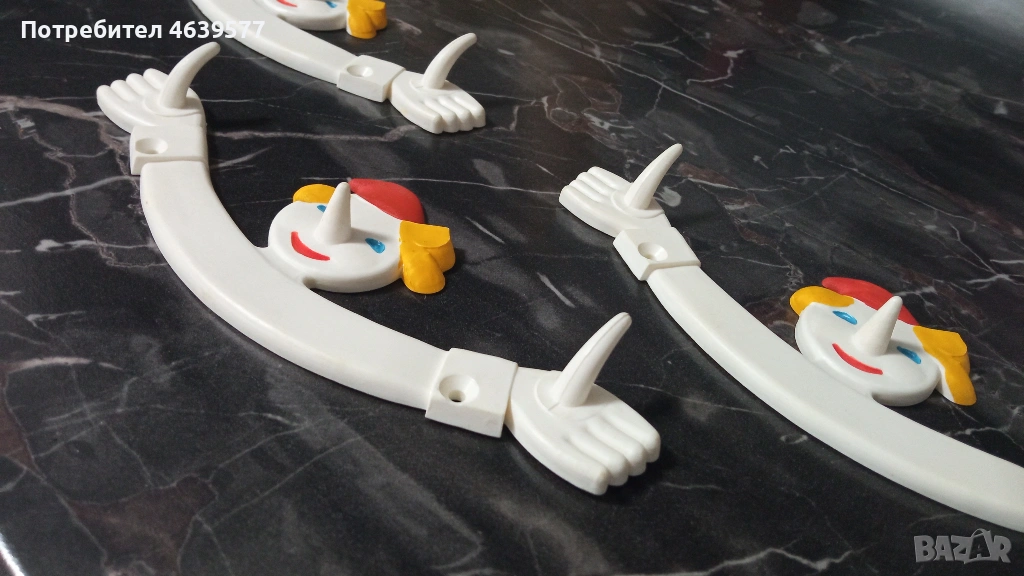Закачалките са купени отдавна, но не са употребявани. Дължина 18см. Цената е за брой. За трите заедно - 4 евро.
