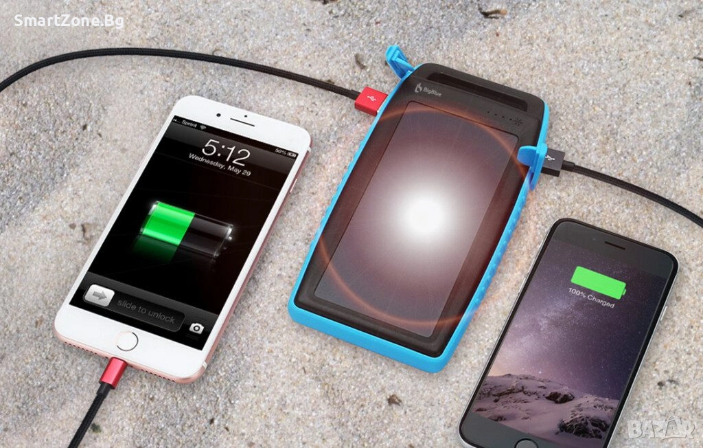 Отивате на къмпинг или на туризъм? Не се притеснявайте, че телефонът Ви ще се разреди в най-неподходящия момент! Соларно зарядно BigBlue с капацитет 10 000mAh ще осигури енергия на Вашите устройства. Оборудван е с 2 USB порта и е IPX4 водоустойчив. Вграденият соларен панел ви позволява да го зареждате с общата налична енергия от слънцето.