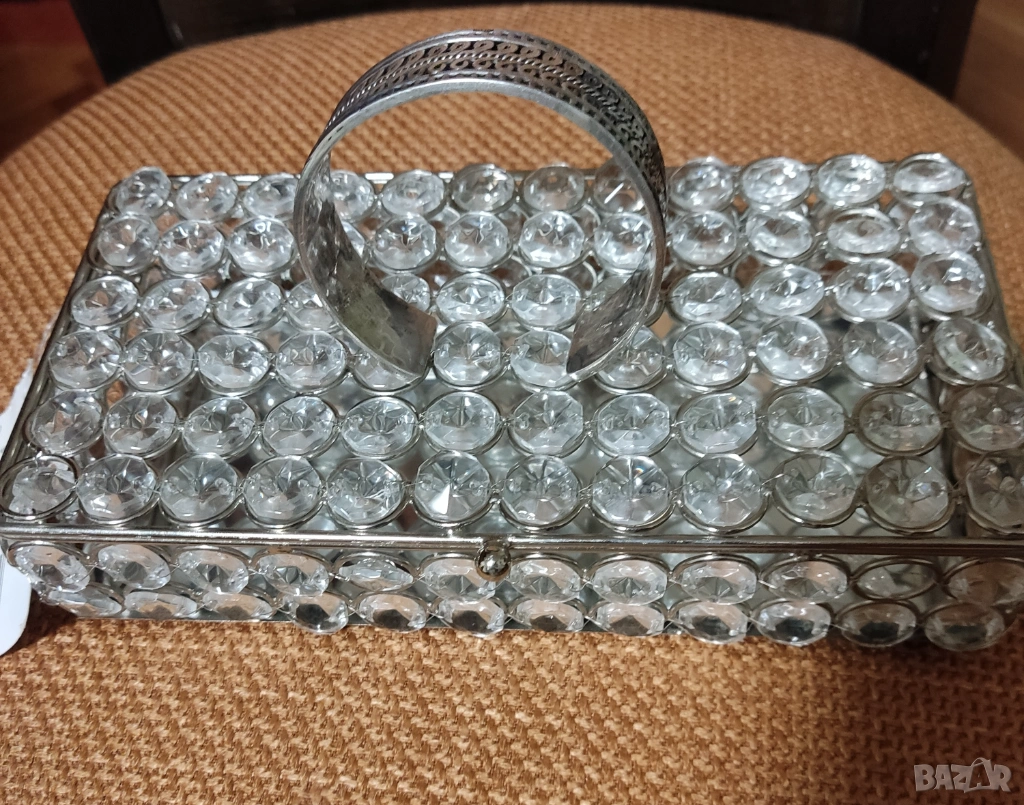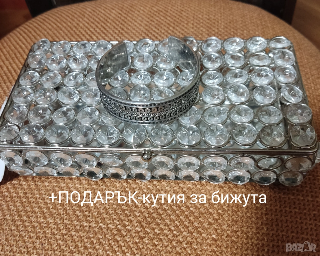 +Подарък ръчно изработена кутия за бижута стъклени и метални орнаменти с огледало-Индия.
