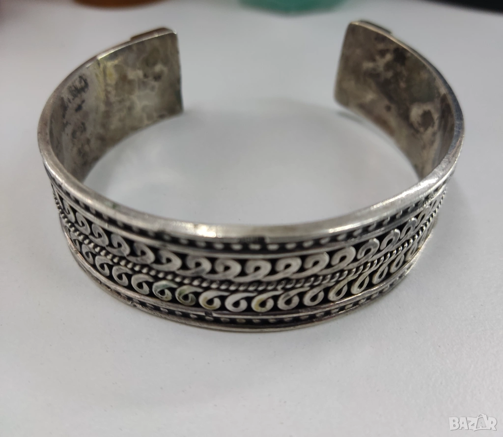 2. Сребърна оксидирана гривна 925 със сложни ръчно гравирани шарки от региона на Индия. 100% автентична.