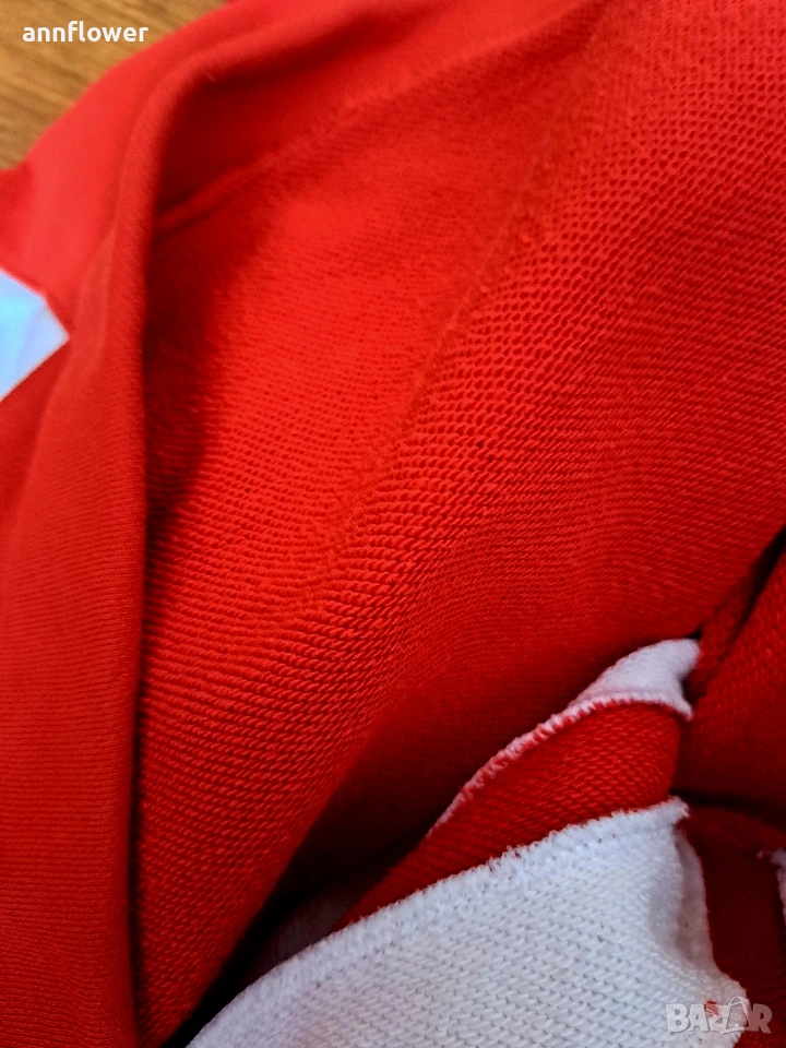 Суичъра е като нов и оригинален. Материя 100%памук, натиран. Размер М дължина 44см, ширина в мишниците едностранно измерена 60см, дължина на ръкава от подмишницата 44см.