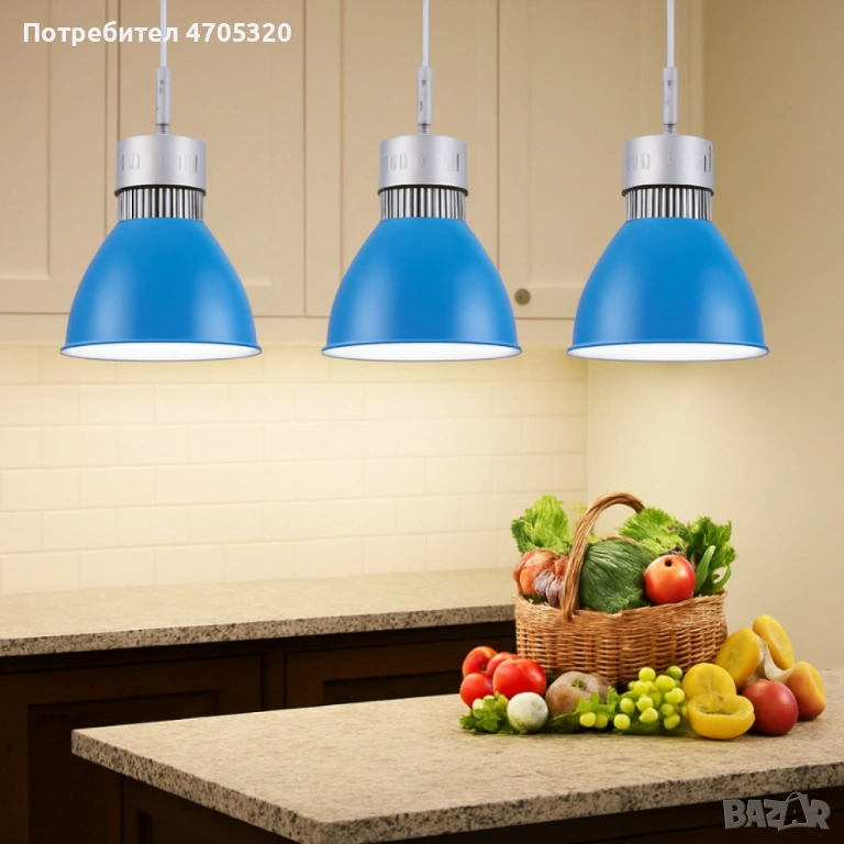 8бр/ LED висяща лампа DL219B – 30W топла светлина за плотове, острови и витрини (Ø250×H280 мм, синя)