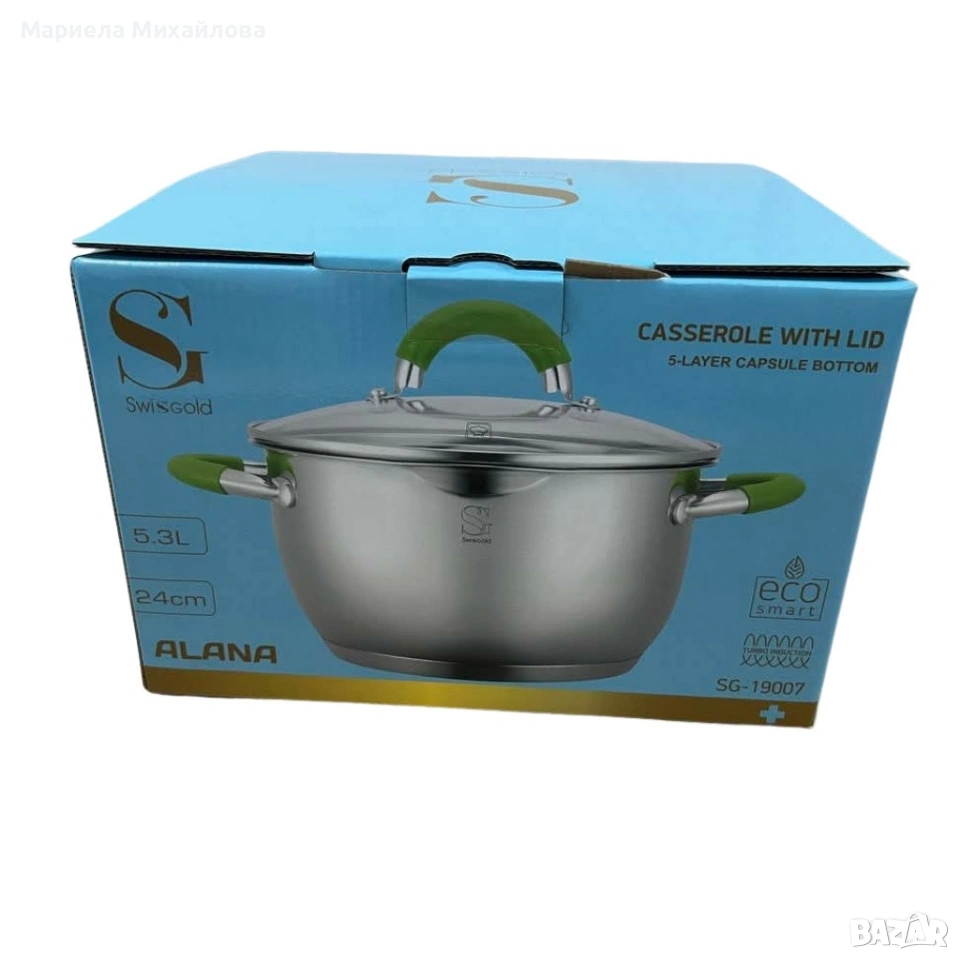 Комплект тенджери Swissgold Alana – 3 броя с капак от неръждаема стомана с 5-слойно капсулно дъно, снимка 1 - Прибори за хранене, готвене и сервиране - 53065752 Комплект тенджери Swissgold Alana – 3 броя с капак от неръждаема стомана с 5-слойно капсулно дъно, снимка 2 - Прибори за хранене, готвене и сервиране - 53065752 Комплект тенджери Swissgold Alana – 3 броя с капак от неръждаема стомана с 5-слойно капсулно дъно, снимка 3 - Прибори за хранене, готвене и сервиране - 53065752 Комплект тенджери Swissgold Alana – 3 броя с капак от неръждаема стомана с 5-слойно капсулно дъно, снимка 4 - Прибори за хранене, готвене и сервиране - 53065752 Комплект тенджери Swissgold Alana – 3 броя с капак от неръждаема стомана с 5-слойно капсулно дъно, снимка 5 - Прибори за хранене, готвене и сервиране - 53065752 Комплект тенджери Swissgold Alana – 3 броя с капак от неръждаема стомана с 5-слойно капсулно дъно, снимка 6 - Прибори за хранене, готвене и сервиране - 53065752 1/6
