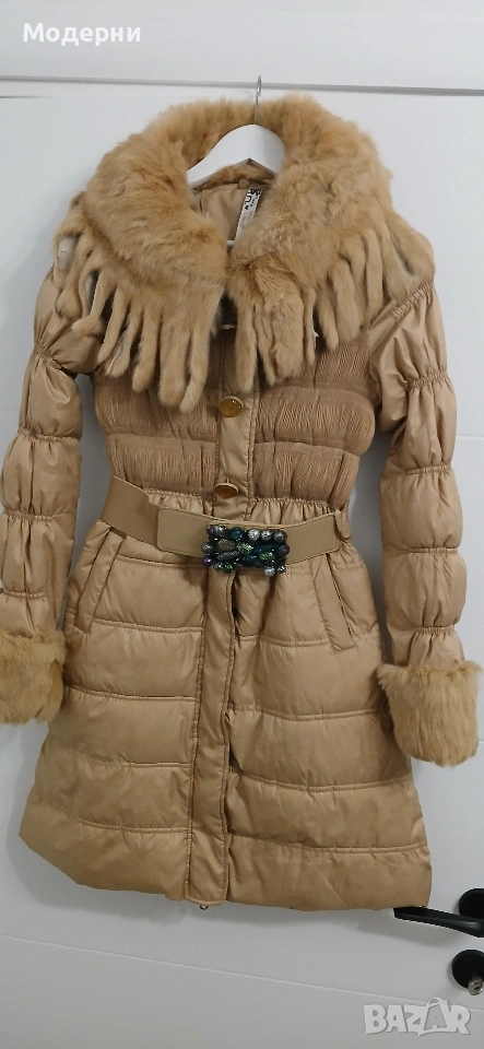 Страхотно яке с естесвен косъм по яката и ръкавите,размер С/M,носено е няколко пъти,без забележки