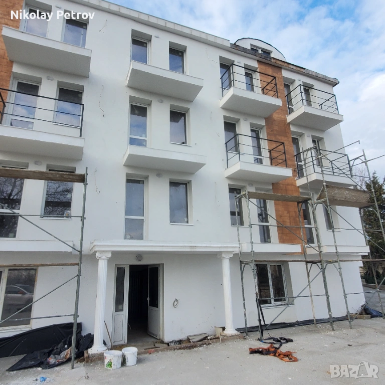 Собственик продава 83.09 кв.м. обща площ, 74.93 кв.м. ЗП тристаен апартамент с АКТ 16 с морска панорама на трети етаж. Изцяло ново-реновирана сграда 2025/26г, строена 2008г и ползвана като хотел до 2010г; стоманобетон+тухла, нов покрив с пакет изолации и ондулин, нова външна топлоизолация 10см, минерална мазилка, нови ВиК и Ел. инсталации с партиди. 5к PVC дограма. Естествено осветено стълбище с гранитогрес и мазилка, без асансьор. В експлоатация.