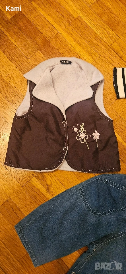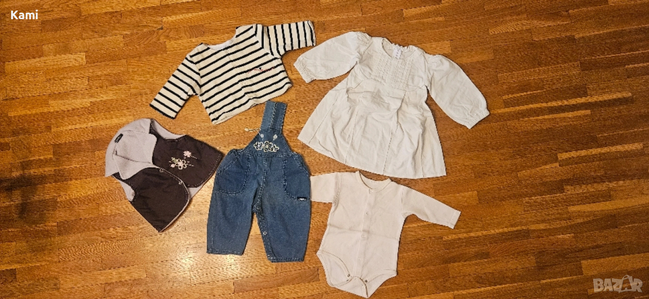 Някои от дрешките останаха нови. Всичко за р. 68. Дънков гащеризон, елече, поларен палтенце, бяла джинсова рокля, боди. Цената е за всичко :) Изпращам чрез Еконт.