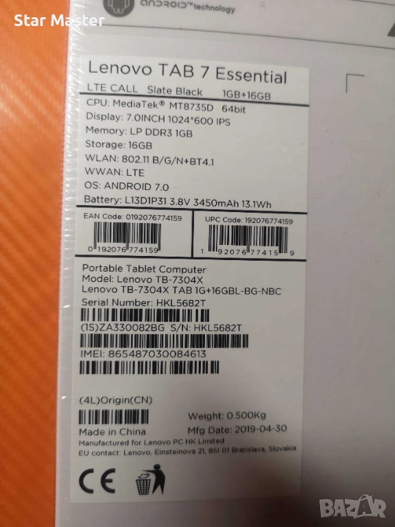Таблет Lenovo Tab 7 Essential в отлично състояние. Таблета е купуван чисто нов от официален вносител на марката в БГ и почти не е ползван. Всичко работи безупречно. Подходящ е за сърфиране в интернет, гледане на филми, четене на книги и др. Има слот за SIM карта и може да се ползва като телефон. Оригинално зарядно. Възстановени са заводските настройки и е готов за нов собственик. Тел.: 0988304113