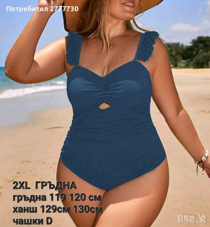 Ефектни бански вбпринт синьо размери 2XL в принт зелено XL. 2XL гр.120 х.130см . XL гр 108 110см регулиращи презрамки с къдрички. Ефектно деколте. Ефектна материя рипс с еластан. Доставяме по Спиди и Еконт опция преглед.