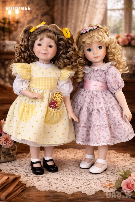 порцеланови кукли, създадени от известната художничка Dianna Effner – моделите Sunshine and Lollipops и Lavender. Куклите са в състояние, практически неразличимо от ново, и се предлагат с всички оригинални аксесоари, документи и кутия, което ги прави подходящи както за колекция, така и за подарък.