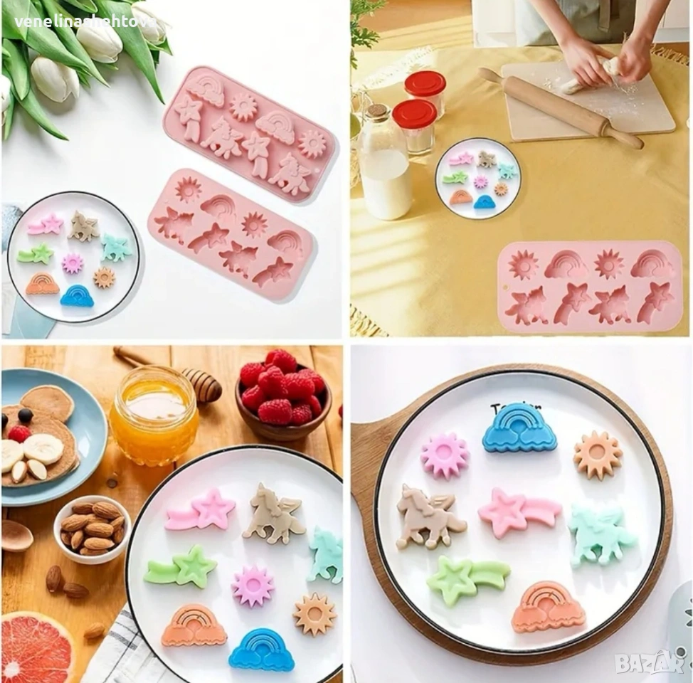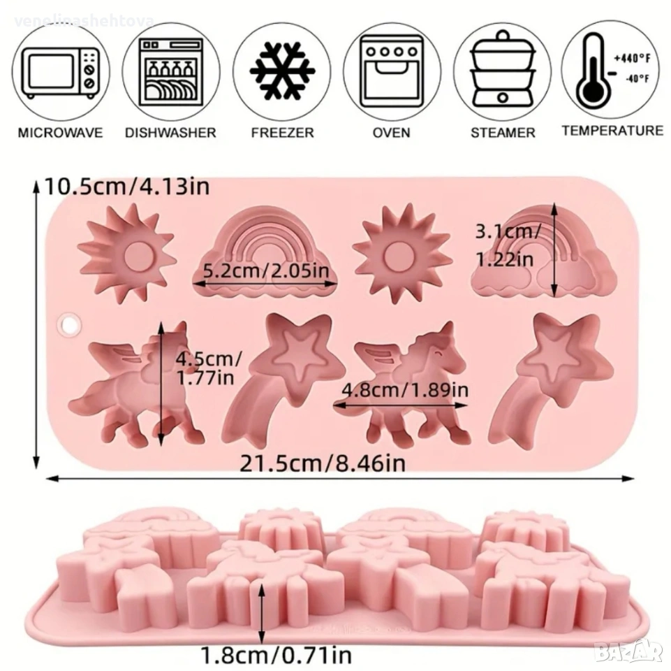 3D Дълбок силиконов молд еднорог дъга слънце фондан шоколад гипс сапун лед → Обява 53066167