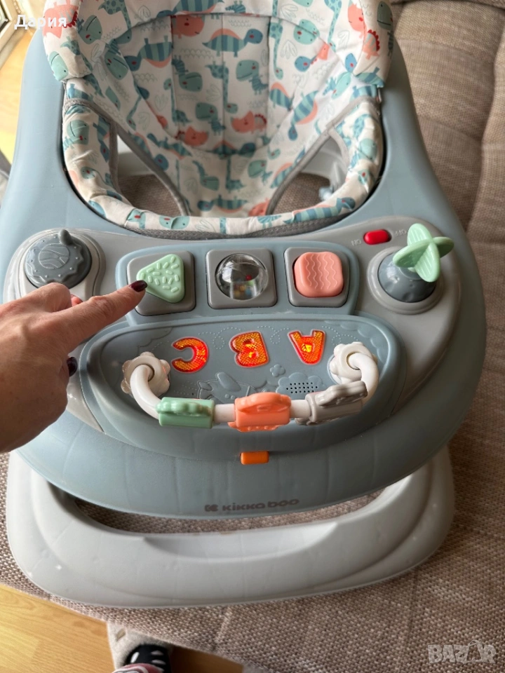 Продавам детска проходилка в много добро състояние. Използвана е малко, без забележки. Стабилна и удобна, с музикален панел и играчки за забавление на детето. Подходяща за деца, които започват да правят първите си стъпки. Регулируема височина. Всички функции работят.