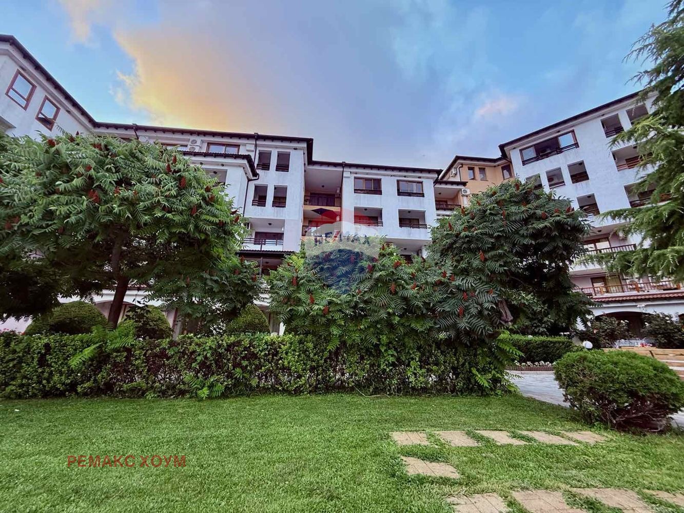 Самата сграда е пететажна с асансьор и контролиран достъп, има Акт 16. С външна изолация. Общите части на кооперацията са в отлично поддържано състояние. Налична е домофонна система, сателитна телевизия и интернет. Таксата поддръжка в комплекса е 14 евро на кв.м годишно, което включва отлична поддържка на общите части на сградата, поддръжка на озеленен и аранжиран двор с чудесен басейн с детска част, 24 - часова охрана, безплатен паркинг на територията на комплекса. Налични са лоби бар и ресторант, СПА, детска площадка.