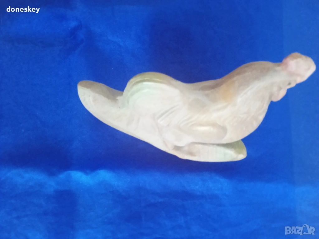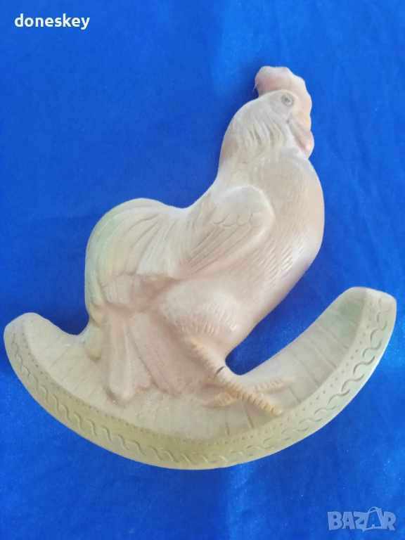 Продавам гумен петел, играчка за малки лапенца, останал от средата на ХХ век досега... но вече с лек дефект - не може да стои съвсем изправен, а се накланя на едната си страна, така че там, където ще бъде поставян, трябва да е подпрян облегнат на едното си крило. Иначе сам по себе си е уникална антика.