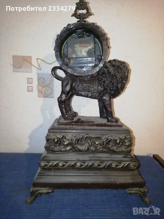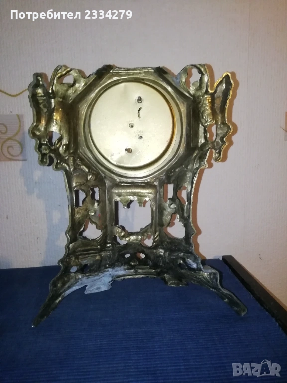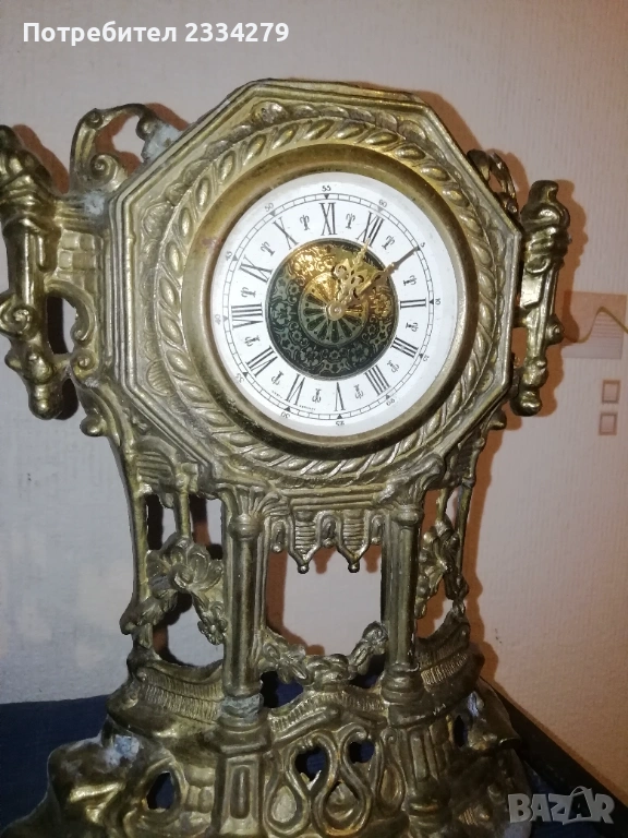 часовник каминен настолен, флоренциански, стил барок, изработен от орнаментиран бронз и алабастър, размери: височина 38см., широчина 23х17см., електромеханика, работещ точно, цена 35€.; N:2 винтидж часовник ,,Le Mantle", тежък месингов лят Lowenthal, бароков стил, произход West Germany, 50 години на миналият век,механичен, римски цифри, цена 40€.