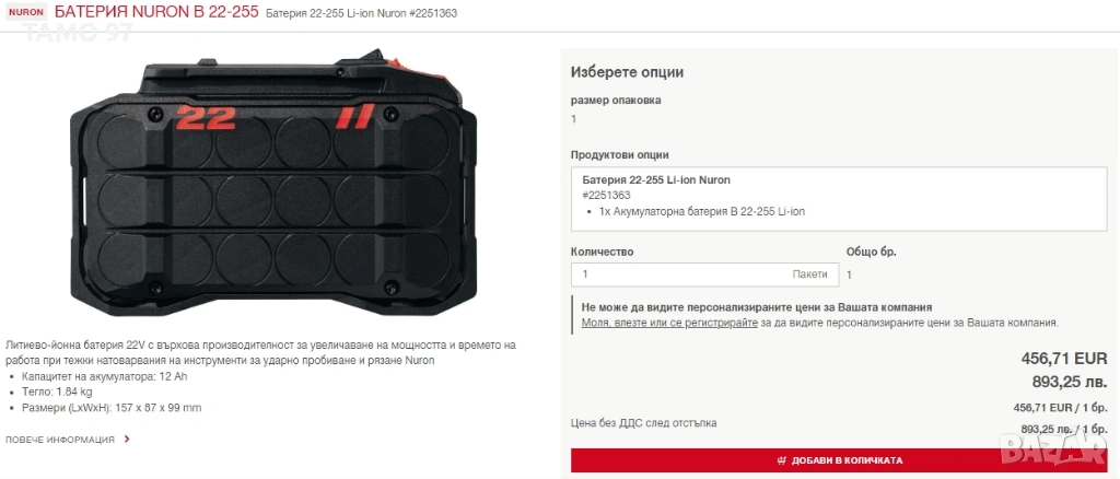Магазинската цена само на една батерия е: 456,71евро БЕЗ ДДС (С ДДСТО Е 548евро)