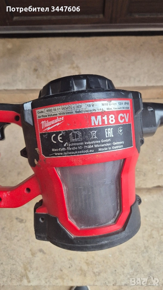 Milwaukee M18 CV прахосмукачка → Обява 53066712