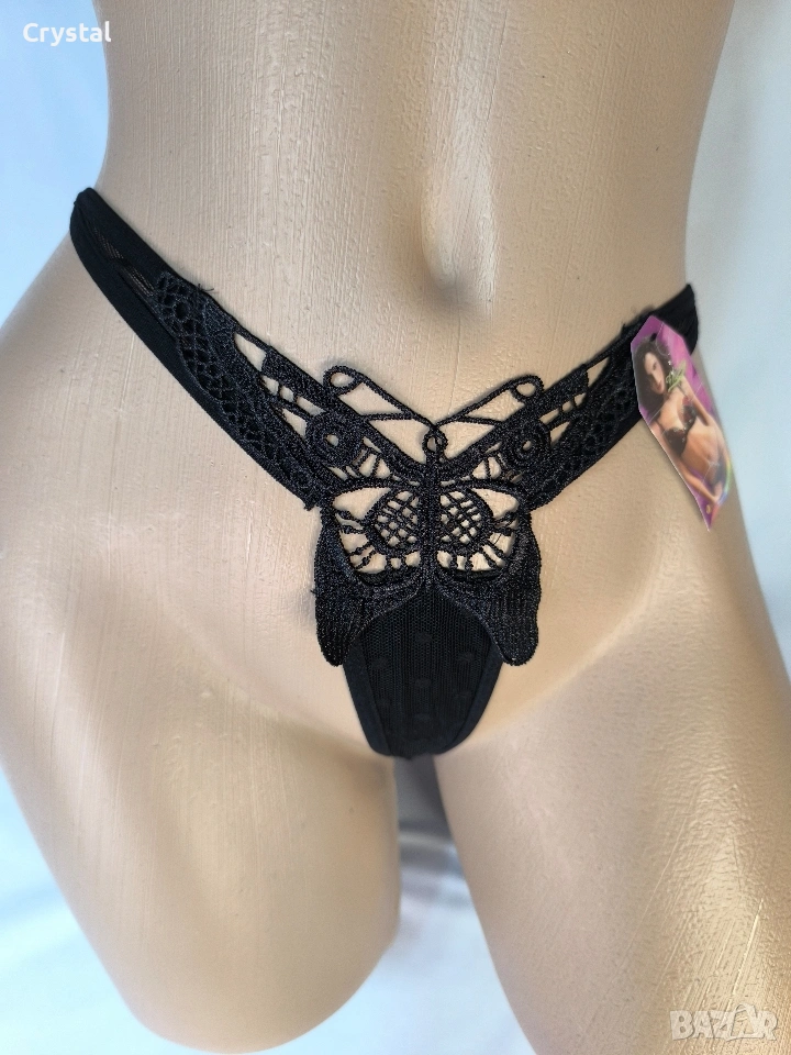 Черни прашки, отпред с бродерия във вид на пеперуда, отзад с тюл, еластични подходящи за S и М размери. Нови-китайски.
