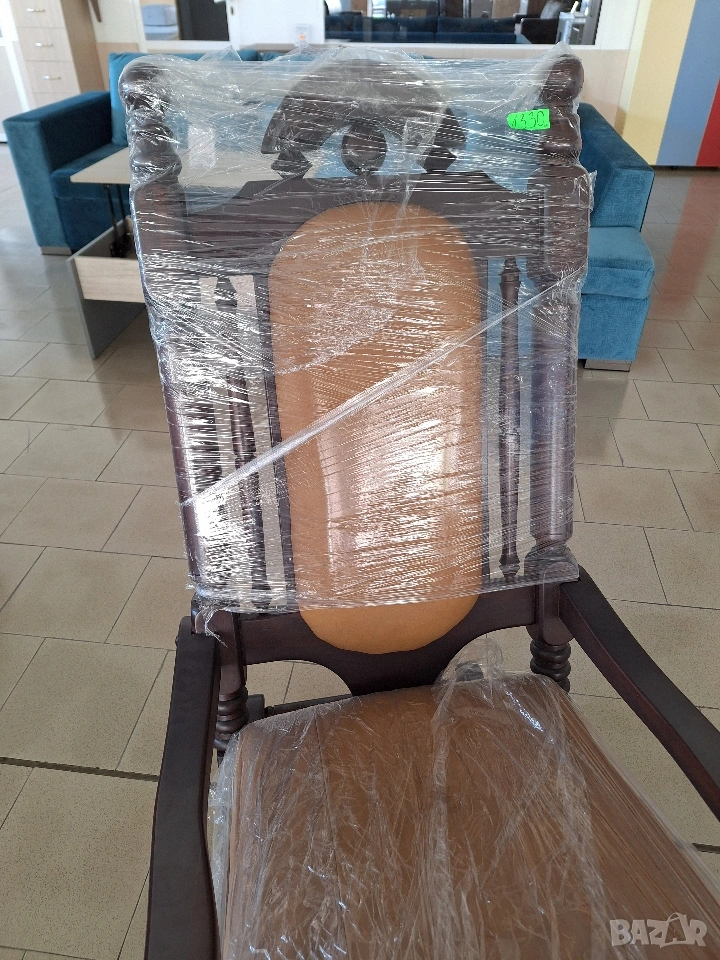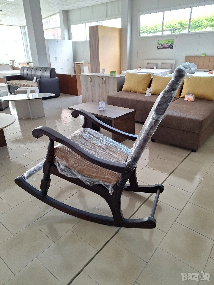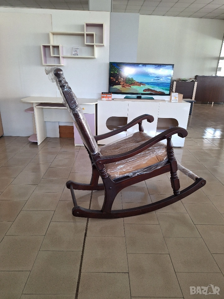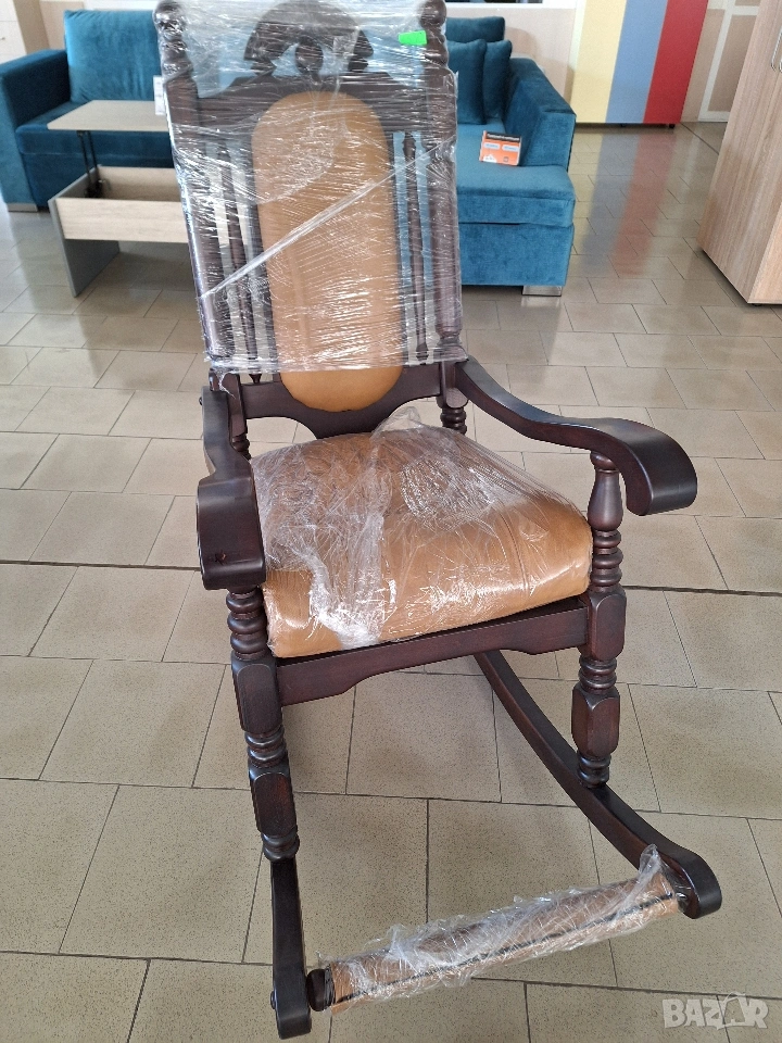 Люлеещ се стол от истинско дърво с естествена кожа.