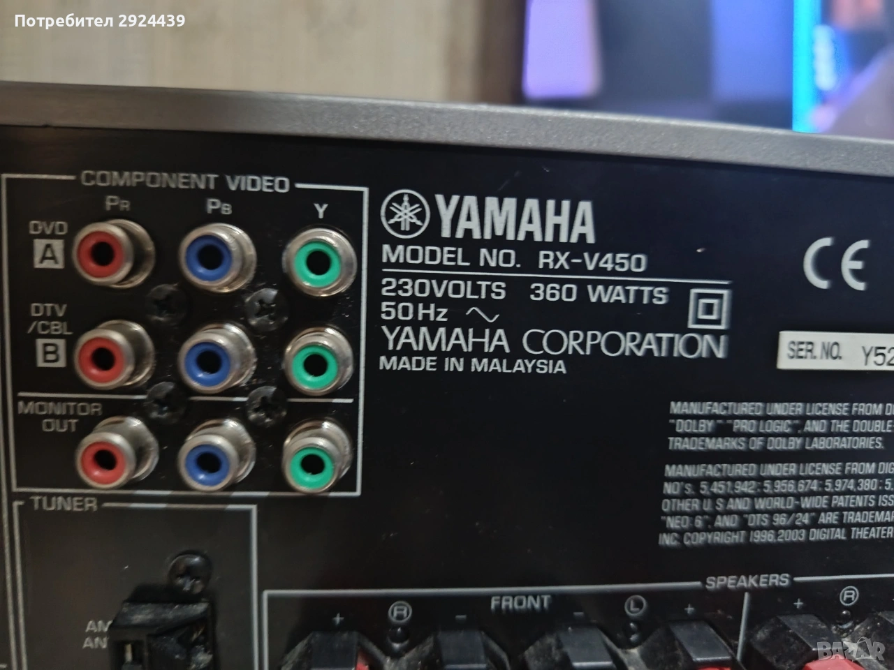 YAMAHA RXV450, снимка 1 - Ресийвъри, усилватели, смесителни пултове - 53066822 YAMAHA RXV450, снимка 2 - Ресийвъри, усилватели, смесителни пултове - 53066822 YAMAHA RXV450, снимка 3 - Ресийвъри, усилватели, смесителни пултове - 53066822 YAMAHA RXV450, снимка 4 - Ресийвъри, усилватели, смесителни пултове - 53066822 YAMAHA RXV450, снимка 5 - Ресийвъри, усилватели, смесителни пултове - 53066822 YAMAHA RXV450, снимка 6 - Ресийвъри, усилватели, смесителни пултове - 53066822 YAMAHA RXV450, снимка 7 - Ресийвъри, усилватели, смесителни пултове - 53066822 1/7
