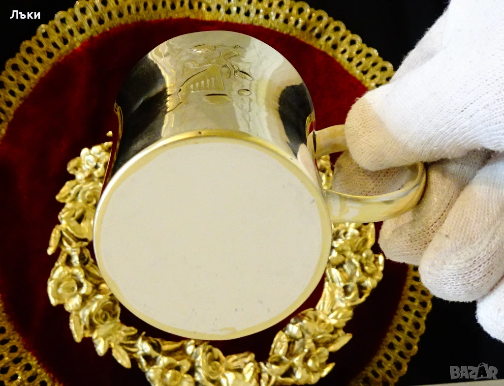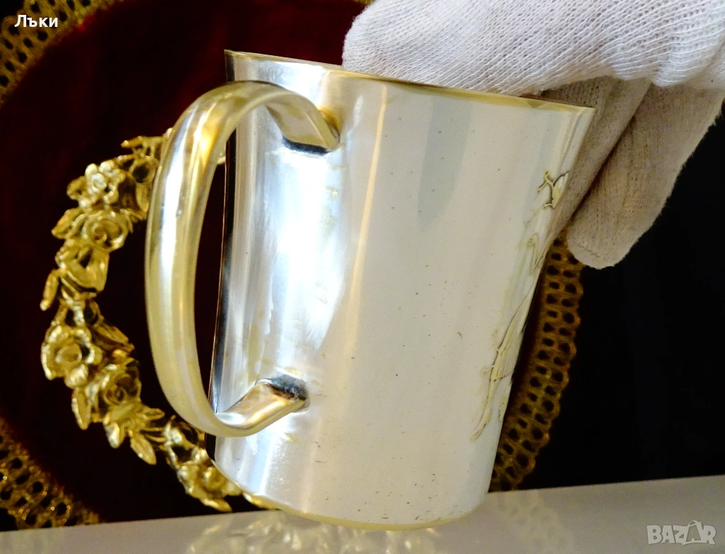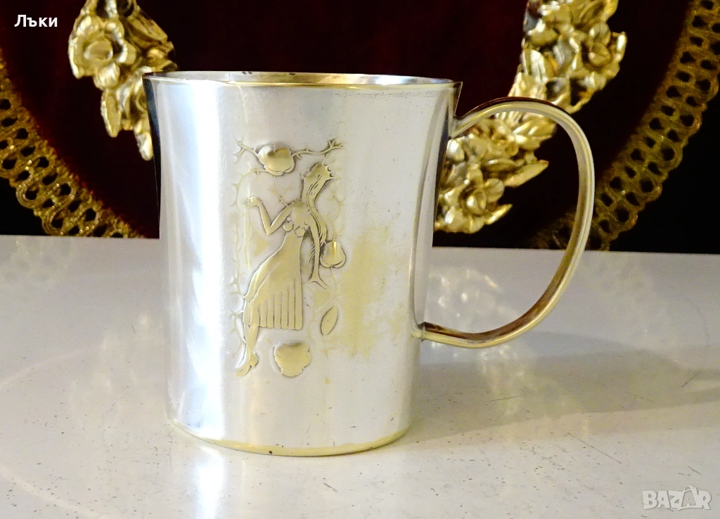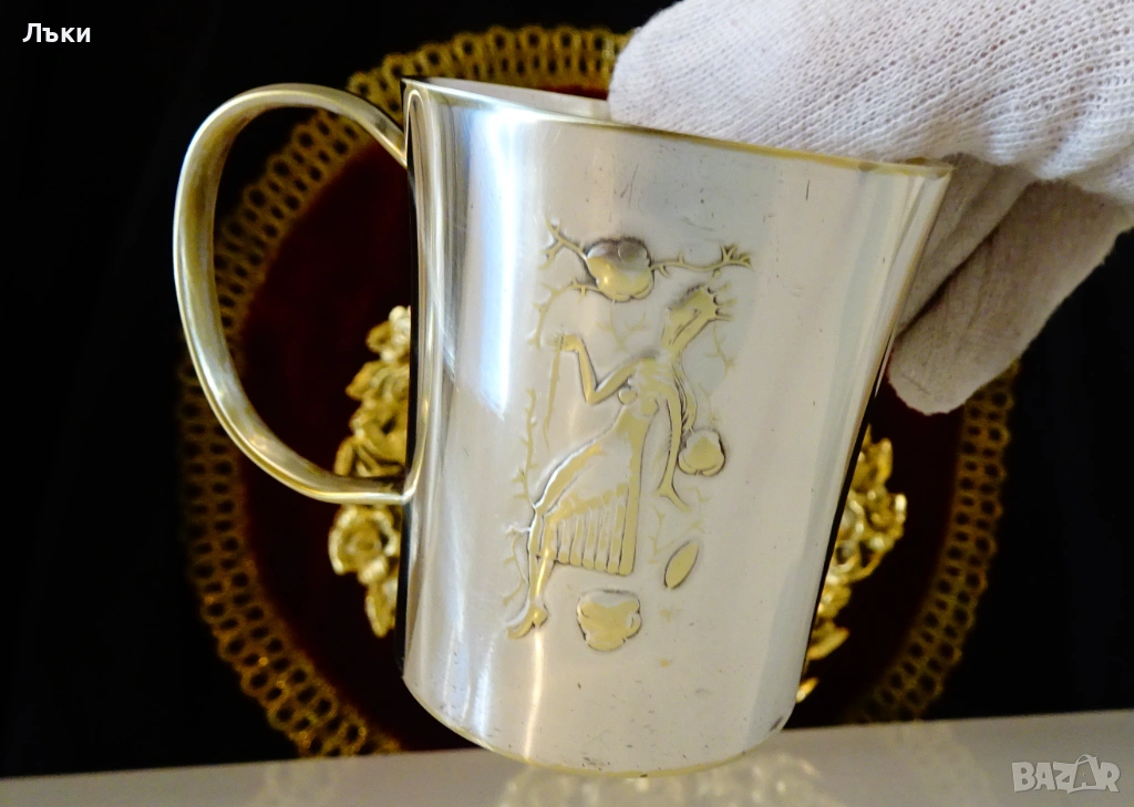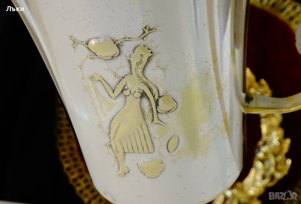 инициалите на световно известната немска фабрика WMF.Декорирана с релефно изображение,мотив