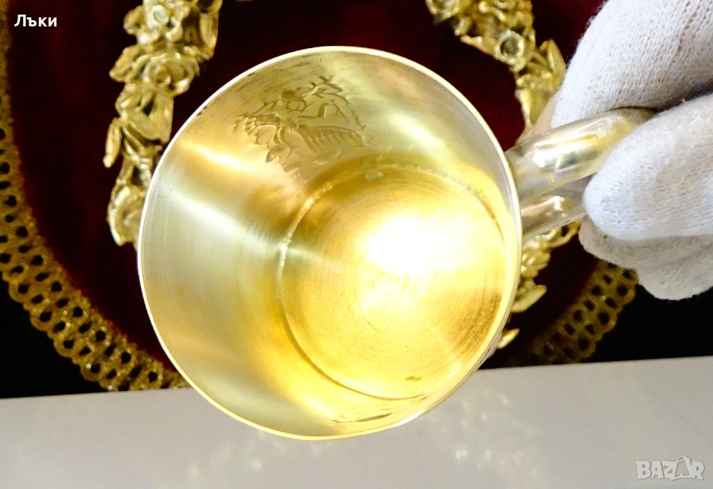 от високо качествен бронз,посребрена с висока проба сребро.Маркирана с