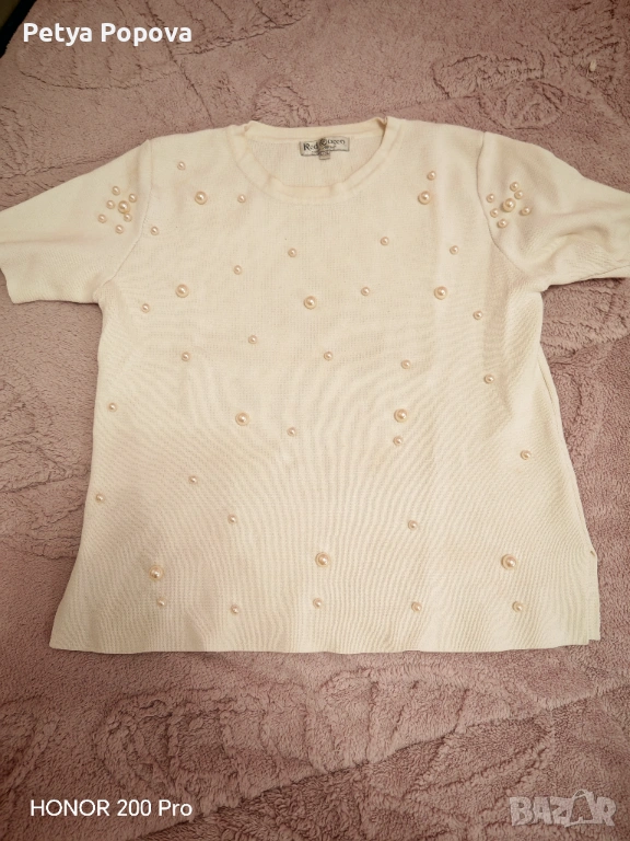 Блуза плетиво с перли къс ръкав → Обява 53066909