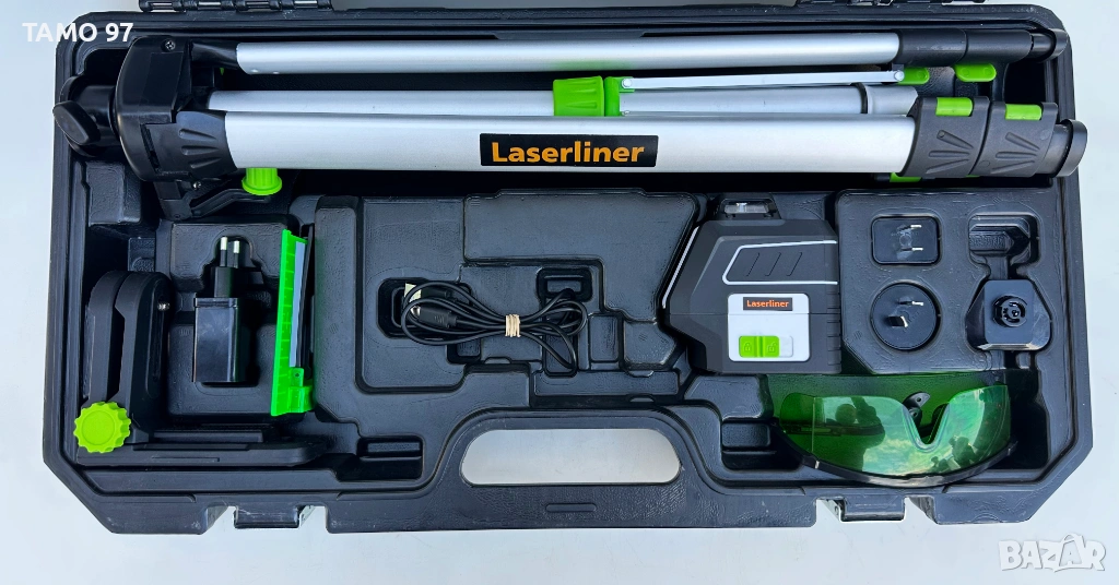 Продавам линеен лазерен нивелир на Laserliner със зелен лъч неразличим от нов, както се вижда на снимките използван е 2 пъти работи и функционира перфектно. Оригинално немско производство внос от Франция. Комплекта включва лазера, стойка, статив, мишена, очила, литиево-йонна батерия 3.7V 3.6Ah, зарядно устройство и оригинален куфар. Пращаме с опция преглед и тест с куриерска фирма еконт може и лично предаване за гр. Шумен.