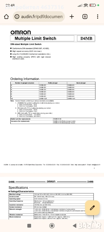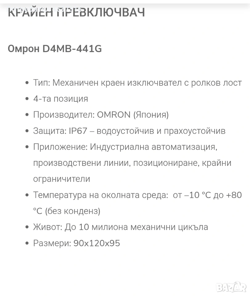 Краен изключвател OMRON D4MB-441G, снимка 1 - Резервни части за машини - 53066961 Краен изключвател OMRON D4MB-441G, снимка 2 - Резервни части за машини - 53066961 Краен изключвател OMRON D4MB-441G, снимка 3 - Резервни части за машини - 53066961 Краен изключвател OMRON D4MB-441G, снимка 4 - Резервни части за машини - 53066961 Краен изключвател OMRON D4MB-441G, снимка 5 - Резервни части за машини - 53066961 Краен изключвател OMRON D4MB-441G, снимка 6 - Резервни части за машини - 53066961 Краен изключвател OMRON D4MB-441G, снимка 7 - Резервни части за машини - 53066961 Краен изключвател OMRON D4MB-441G, снимка 8 - Резервни части за машини - 53066961 Краен изключвател OMRON D4MB-441G, снимка 9 - Резервни части за машини - 53066961 Краен изключвател OMRON D4MB-441G, снимка 10 - Резервни части за машини - 53066961 1/10