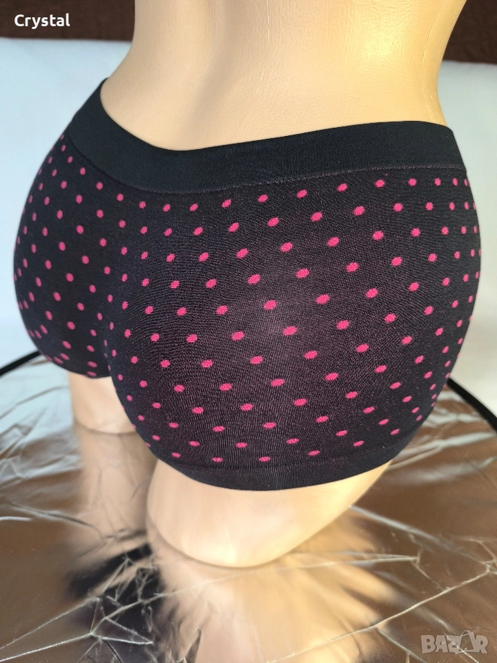 Черни еластични боксерки на розови точки. Нежна еластична материя подходящи за S или М размери. Отлично състояние, без етикет.