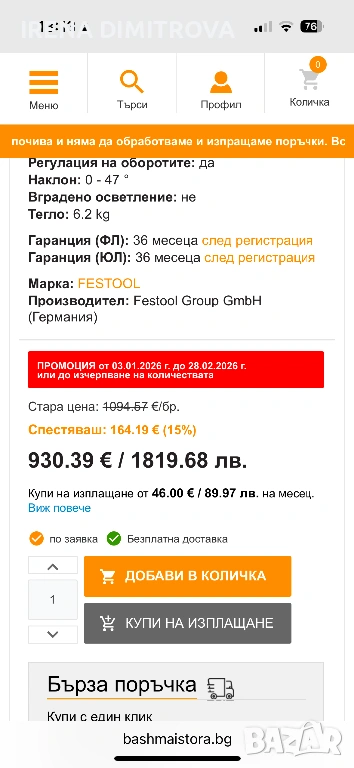 Festool ts75 EBQ plus → Обява 53067077