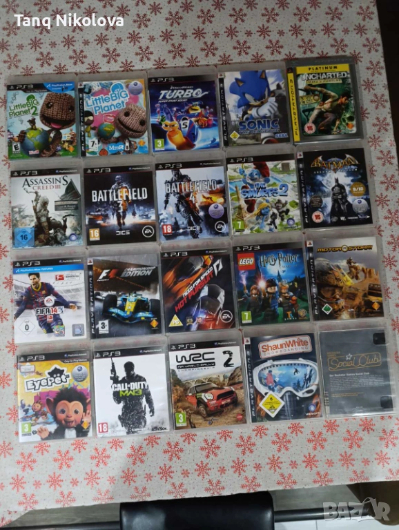 Цена за целия комплект игри+ PS 3 + всички необходимо кабели и 2 броя джойстици-250 лв. (130 €)