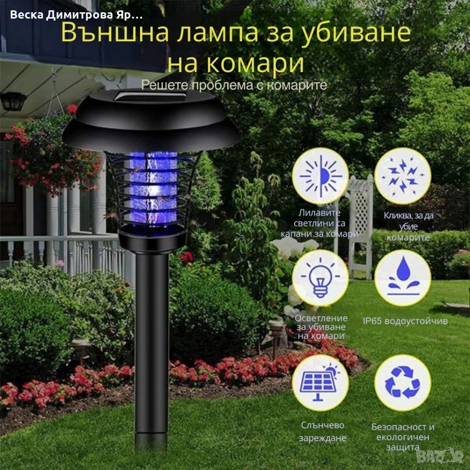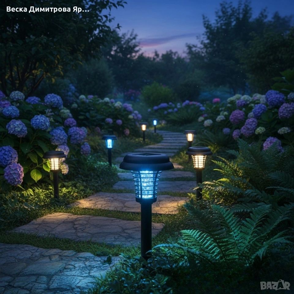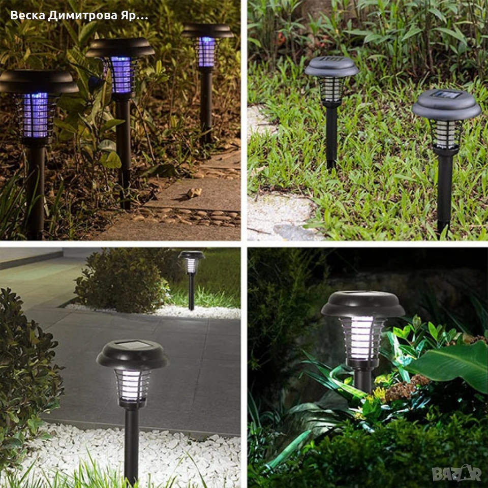 Соларна лампа против комари за открито – комплект 2 броя с UV защита и декоративно осветление → Обява 53067162