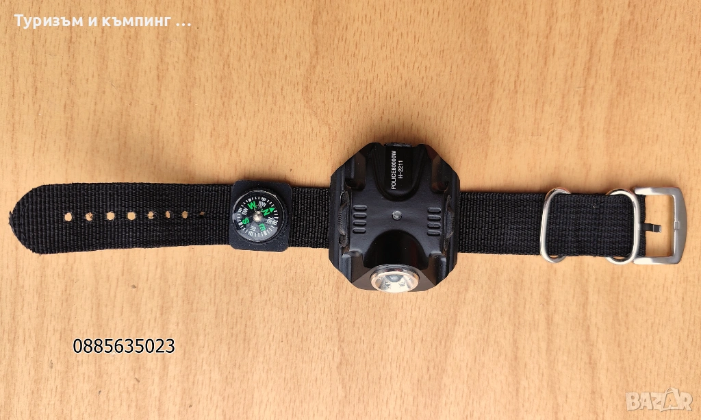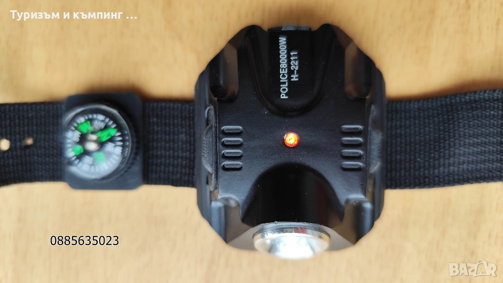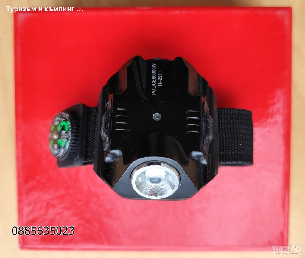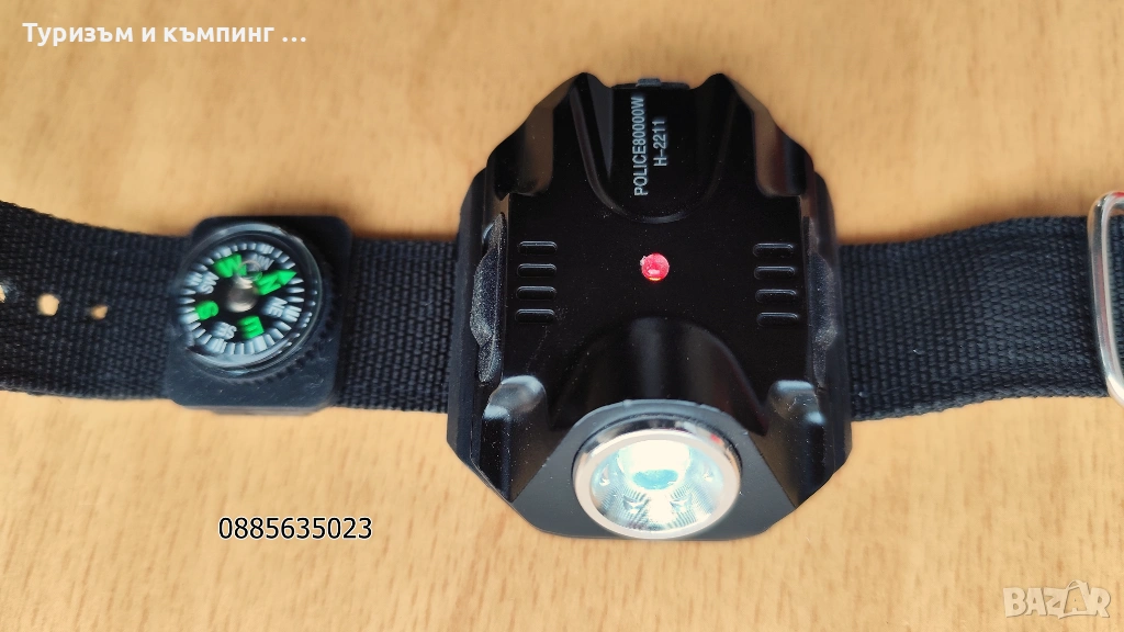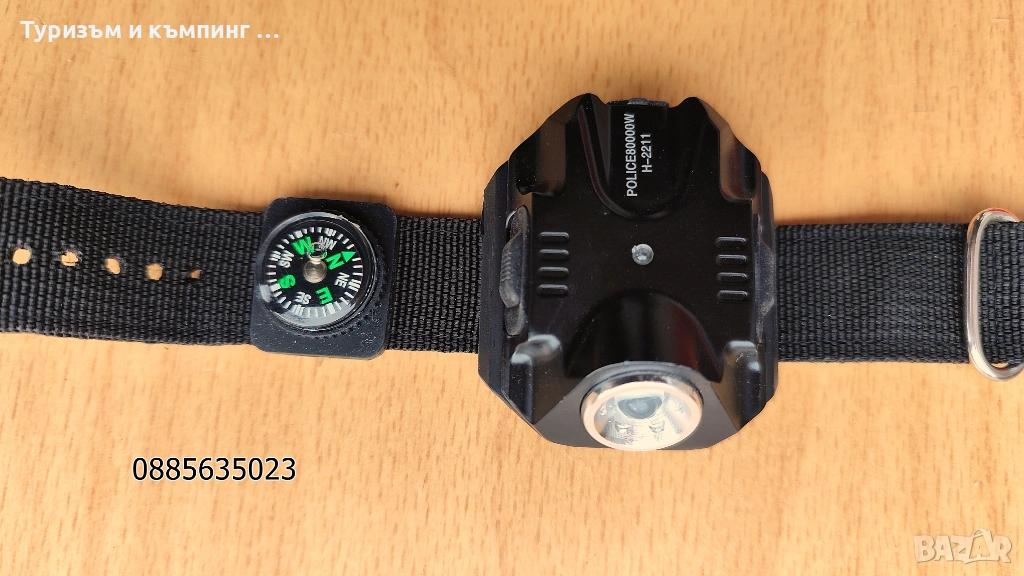 Прожектор тип ,,часовник за ръка" с компас Н2211 със силен CREE Q5 LED диод 180 лумена, различни режими на светене и акумулаторна батерия