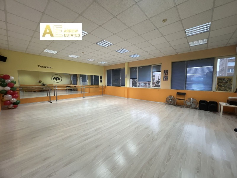 Бизнес помещение подходящо за различни видове търговска дейност.Подходящо за фитнес зала,танци и/или други спортни и социални дейности.Състои се от три зали съответно с големина (109 кв, 78 кв, 59 кв), 4 броя съблекални, сервизни помещения.Интернет окабеляване и оптична свързаност,охрана и видеонаблюдение в сградата 24/7.Отопление на електричество,възможност за наемателя да монтира климатици.Възможност за наемане на паркоместа.Комуникативна локация с бърз и лесен достъп до център,спирки на градски транспорт в близост и бъдеща Метростанция.Заведения за хранене и магазини в комплекса и в непосредствена близост.