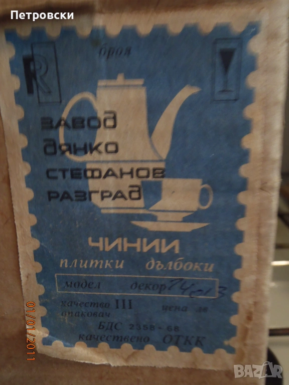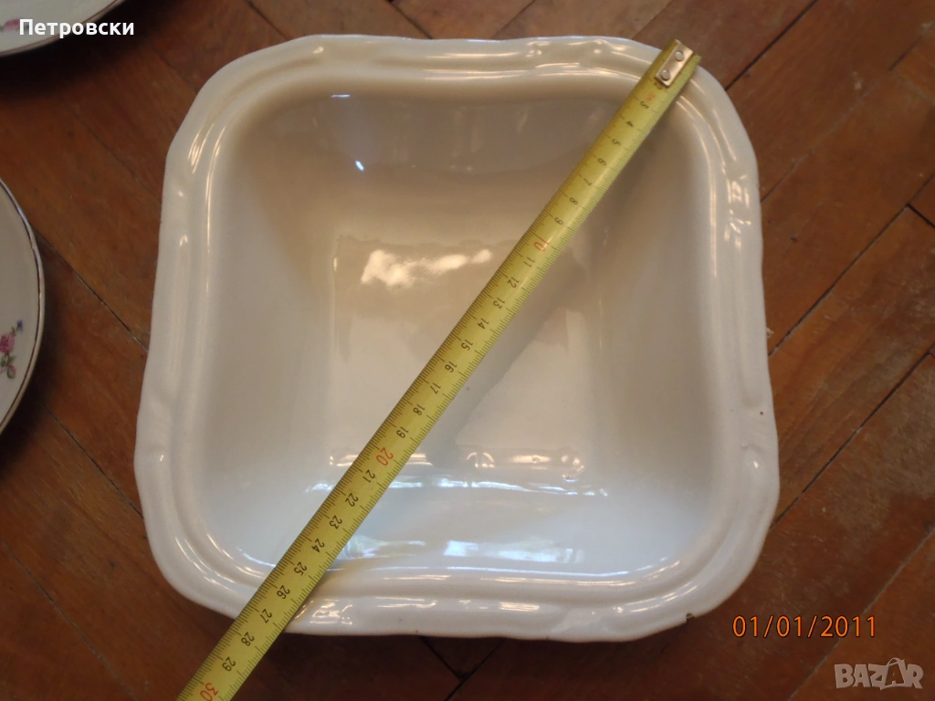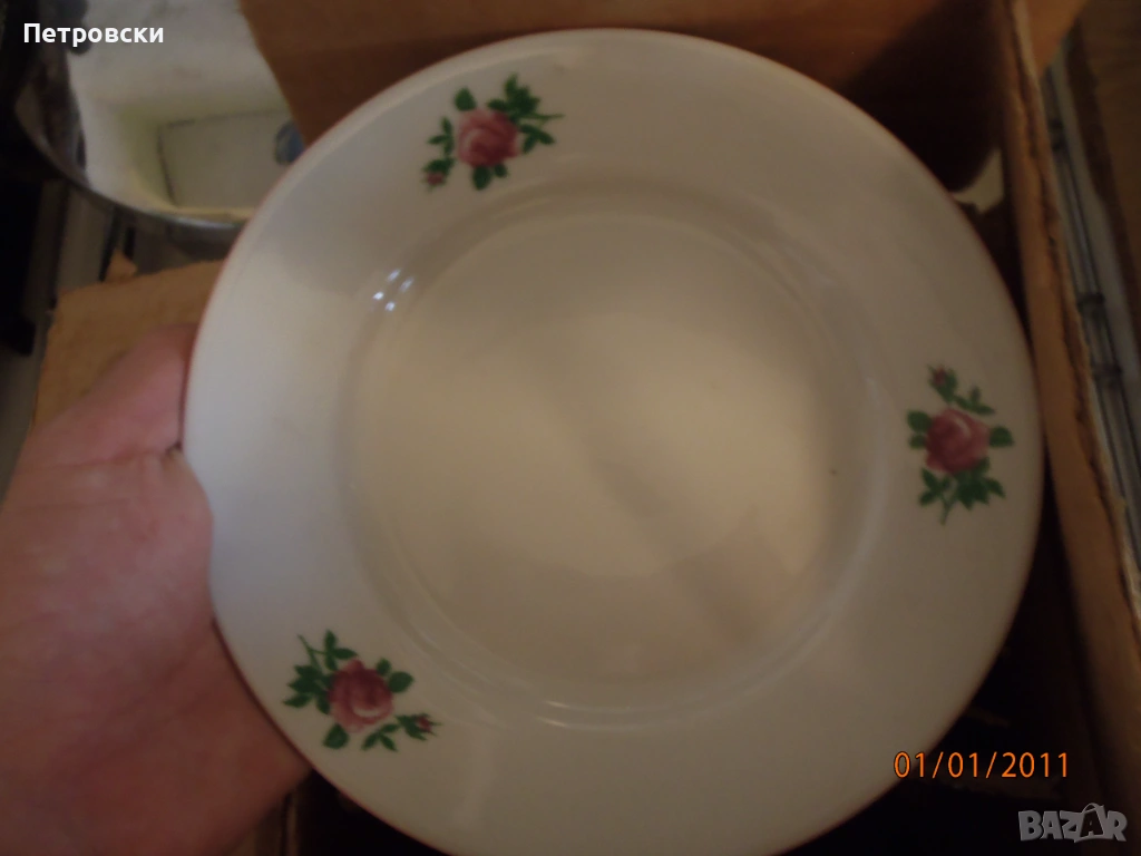 Продавам порцеланови чинии и кана за вода от социализма, произведени в България.