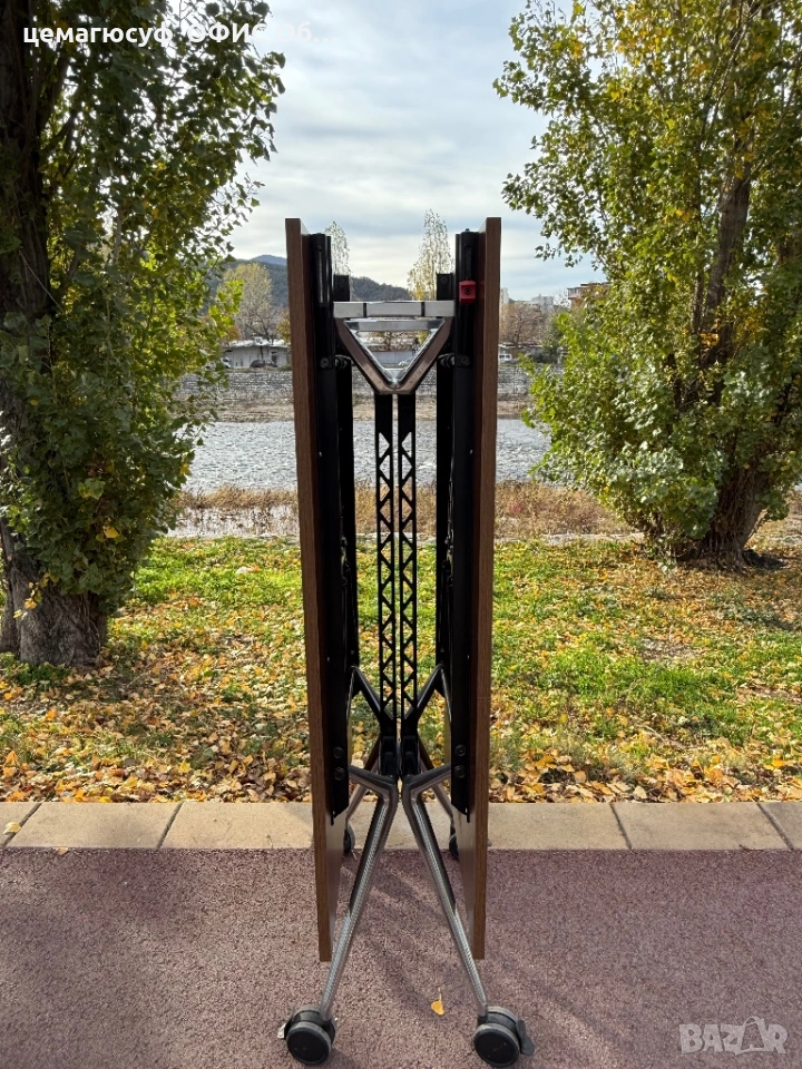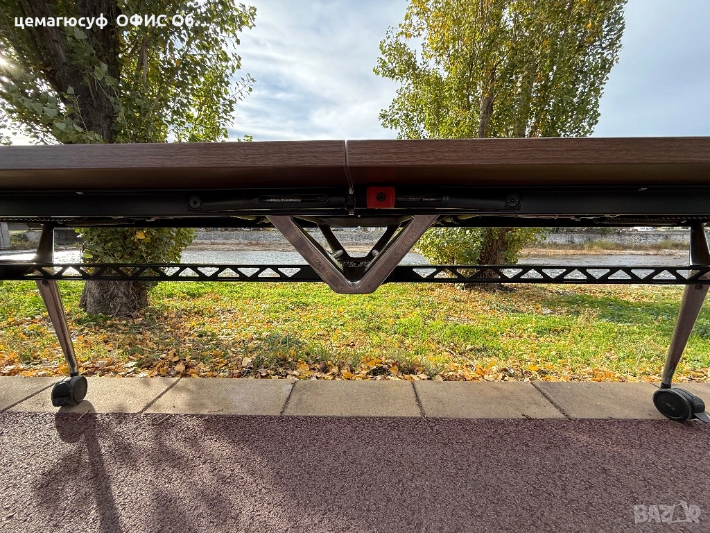 Висококачествена и стабилна рамка за маса, изработена от стоманен метал. Благодарение на колелата и функцията за сгъване, масата може лесно да се мести и съхранява по начин, спестяващ място.