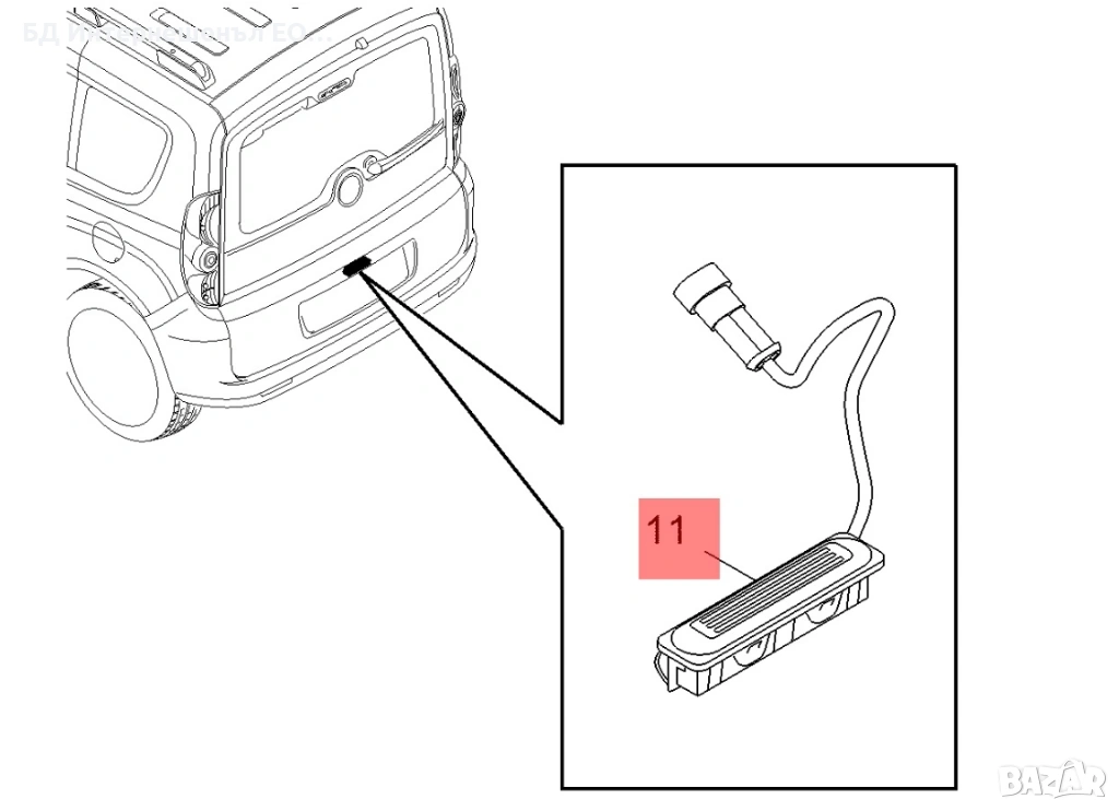 Бутон за отваряне на багажник Fiat, Doblo MK2 Facelift, Opel Combo D, Единична врата