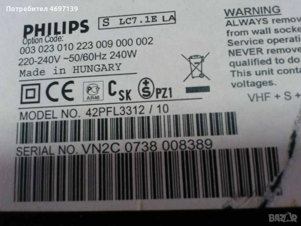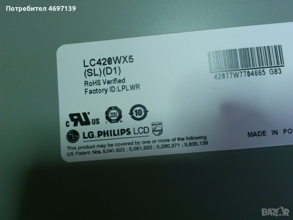 PHILIPS 42PFL3312-3122 423-31942-LC420WX5-SLC2 → Обява 53067760
