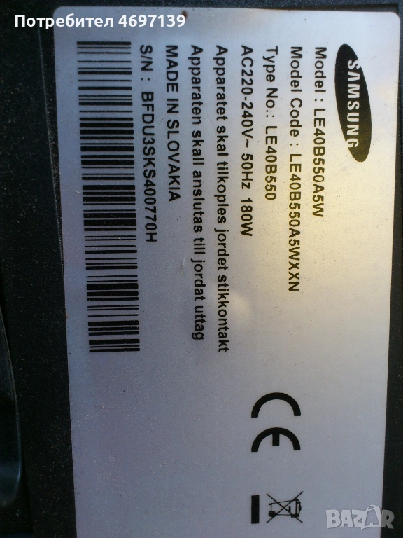SAMSUNG LE40B550A5WXXN /BN 44-00264A/V 400H1-C05 → Обява 53067798